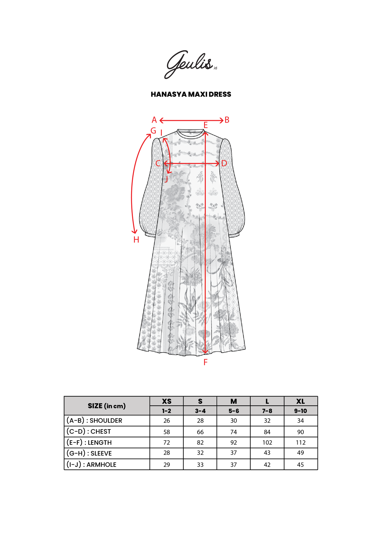 Panjang Dress: 72/82/92/102/112cm