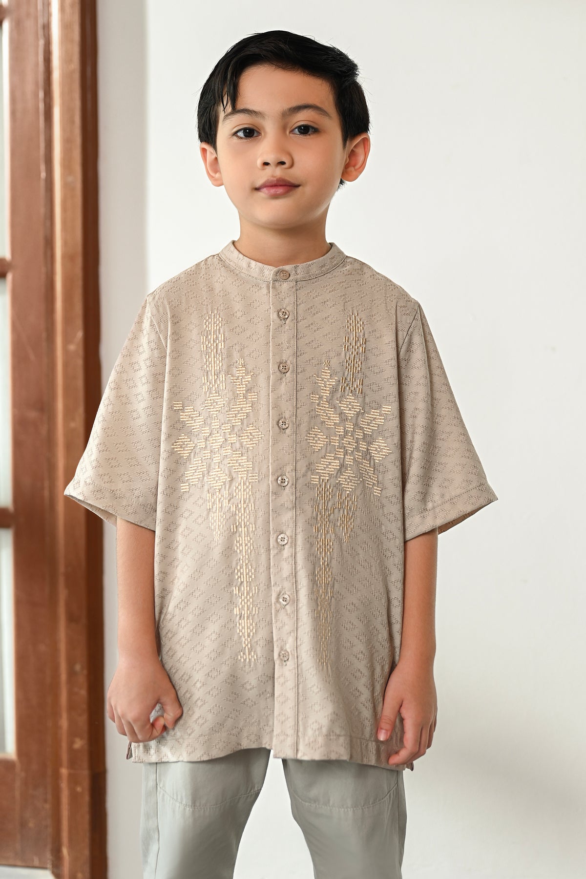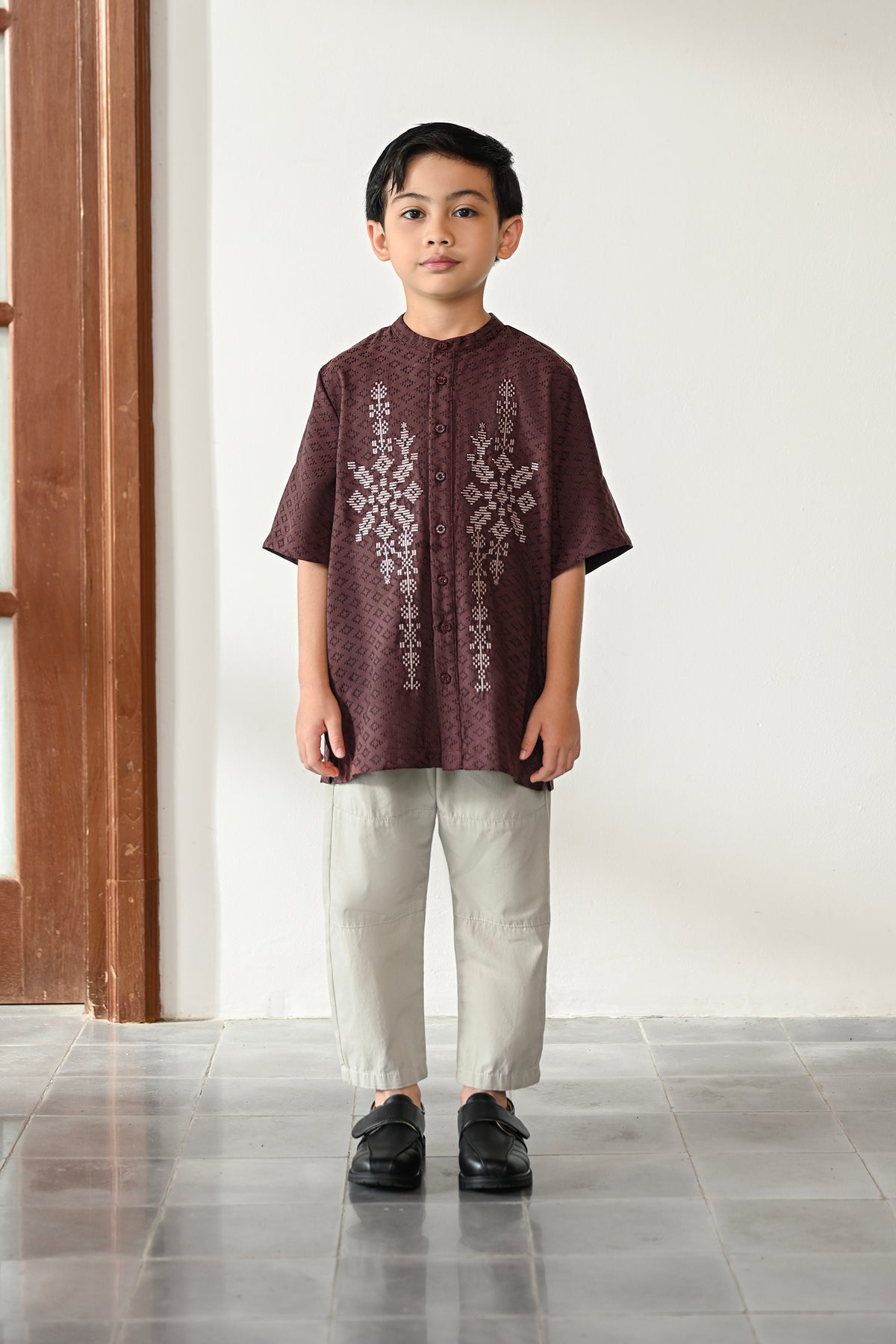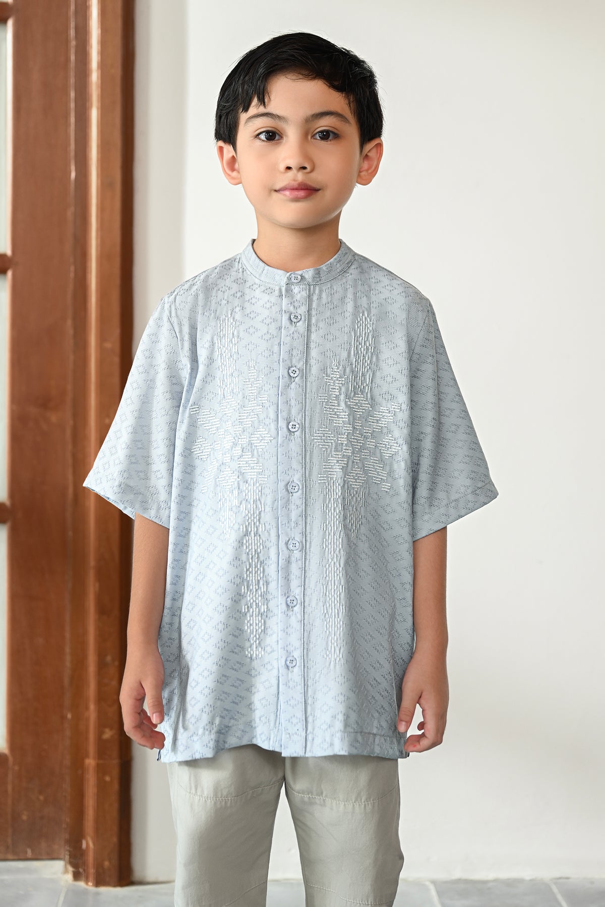 • Bukaan full kancing di bagian depan