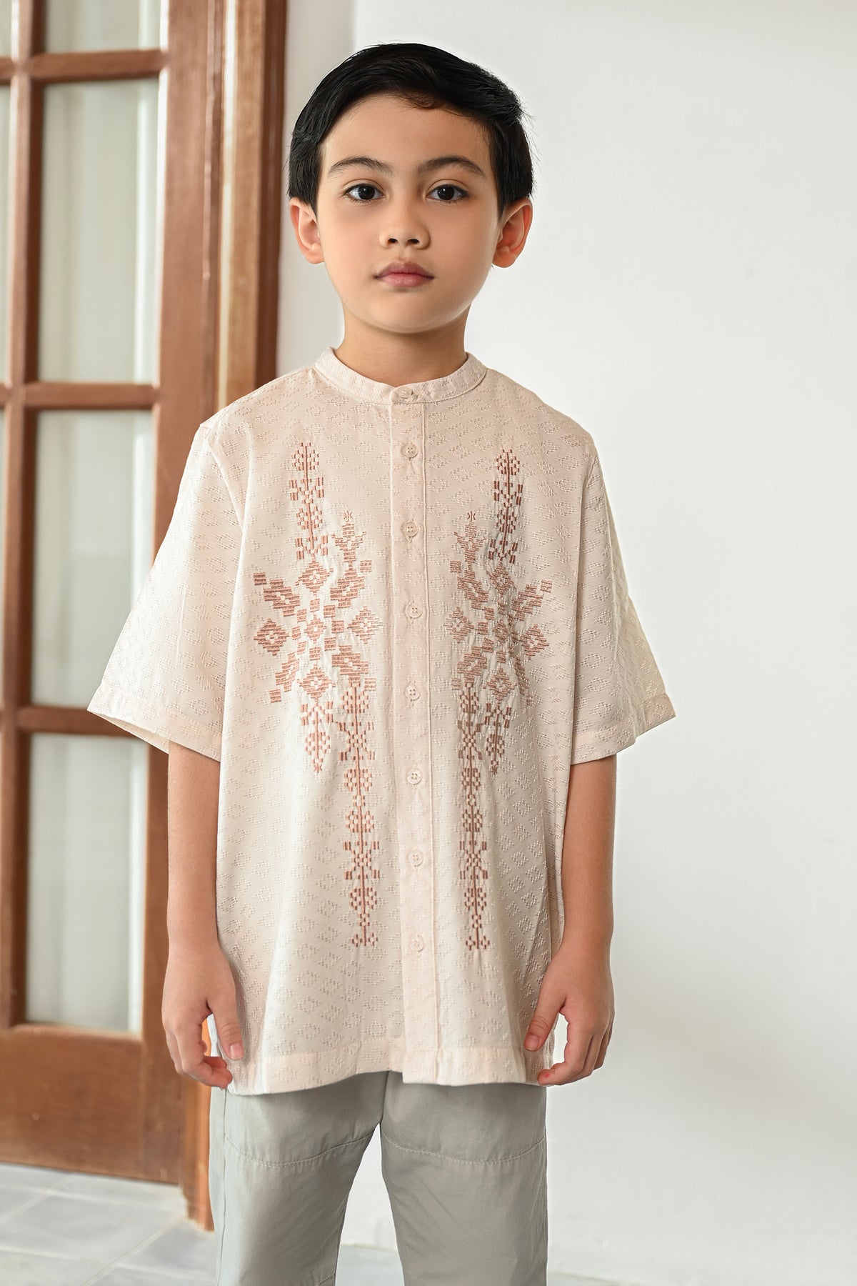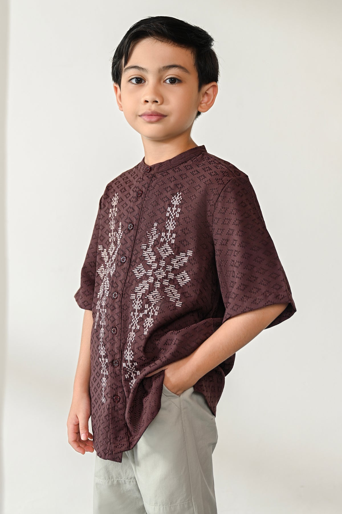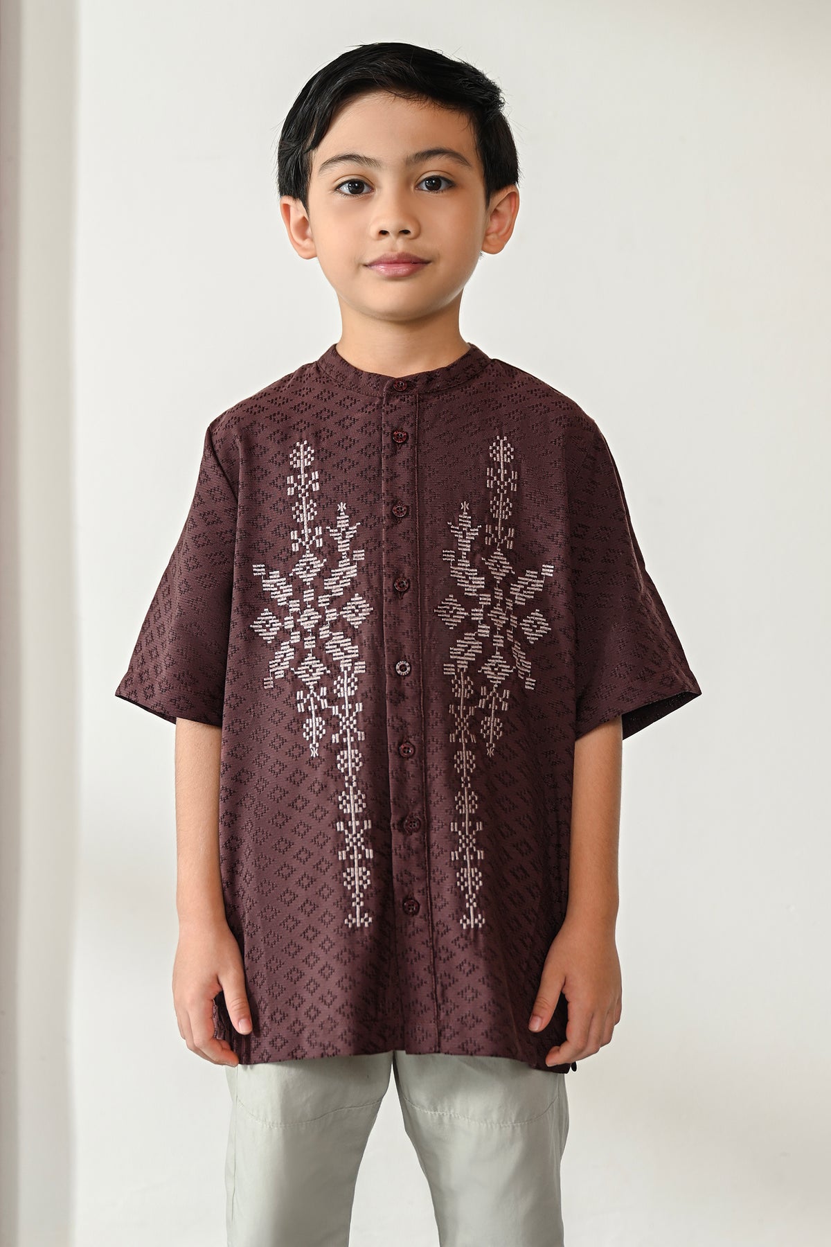 • Bukaan full kancing di bagian depan