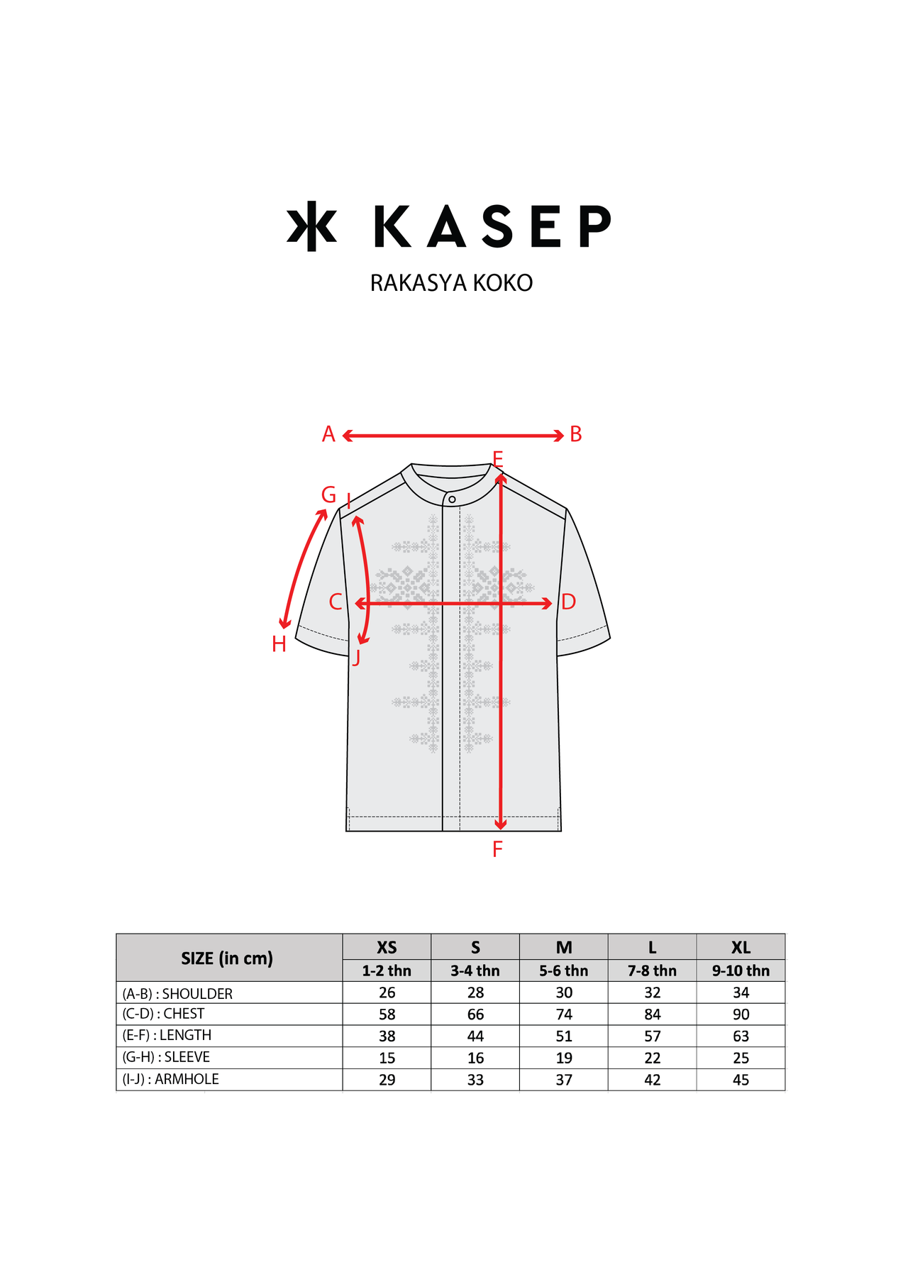 Lingkar Kerung Lengan: 29/33/37/42/45cm