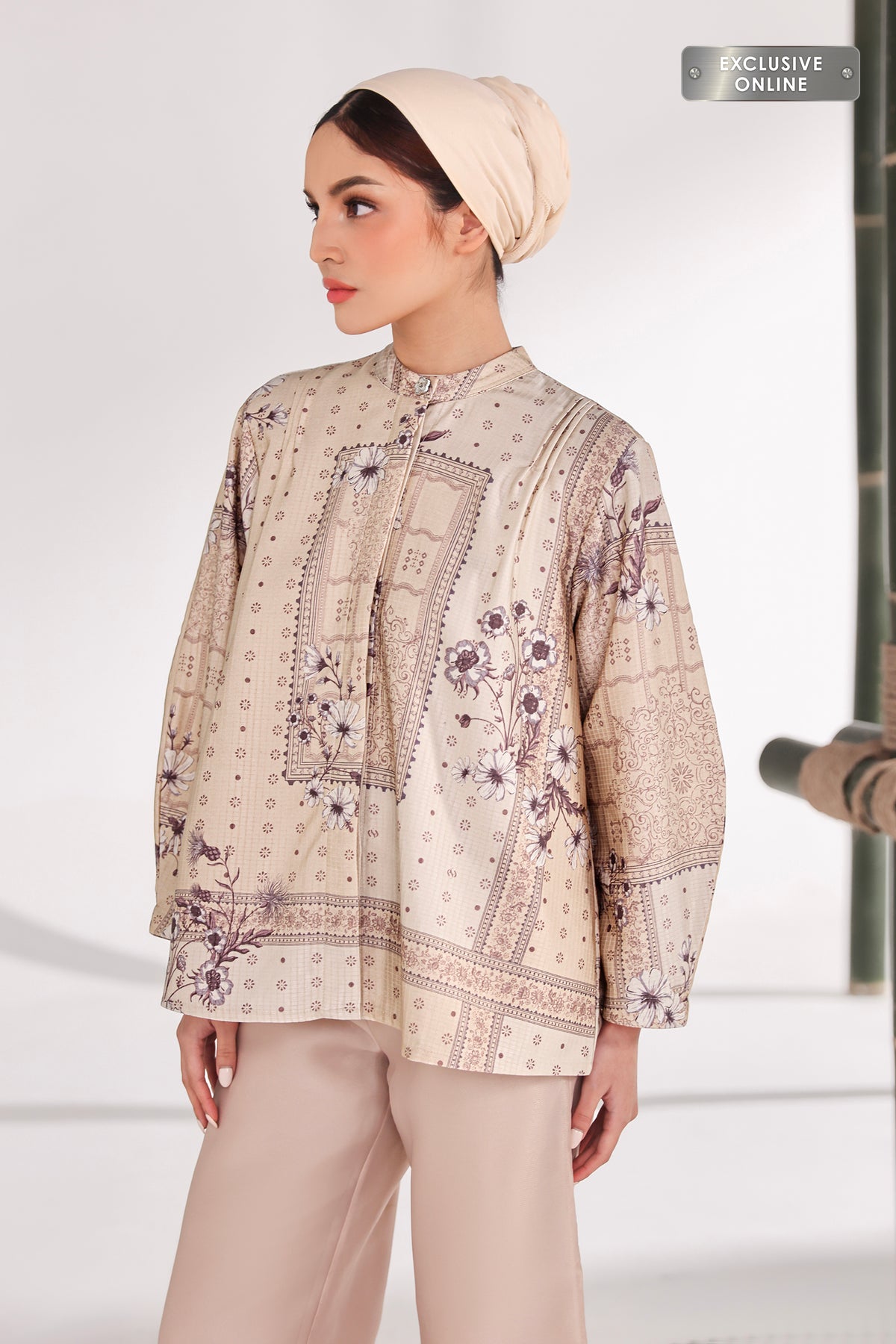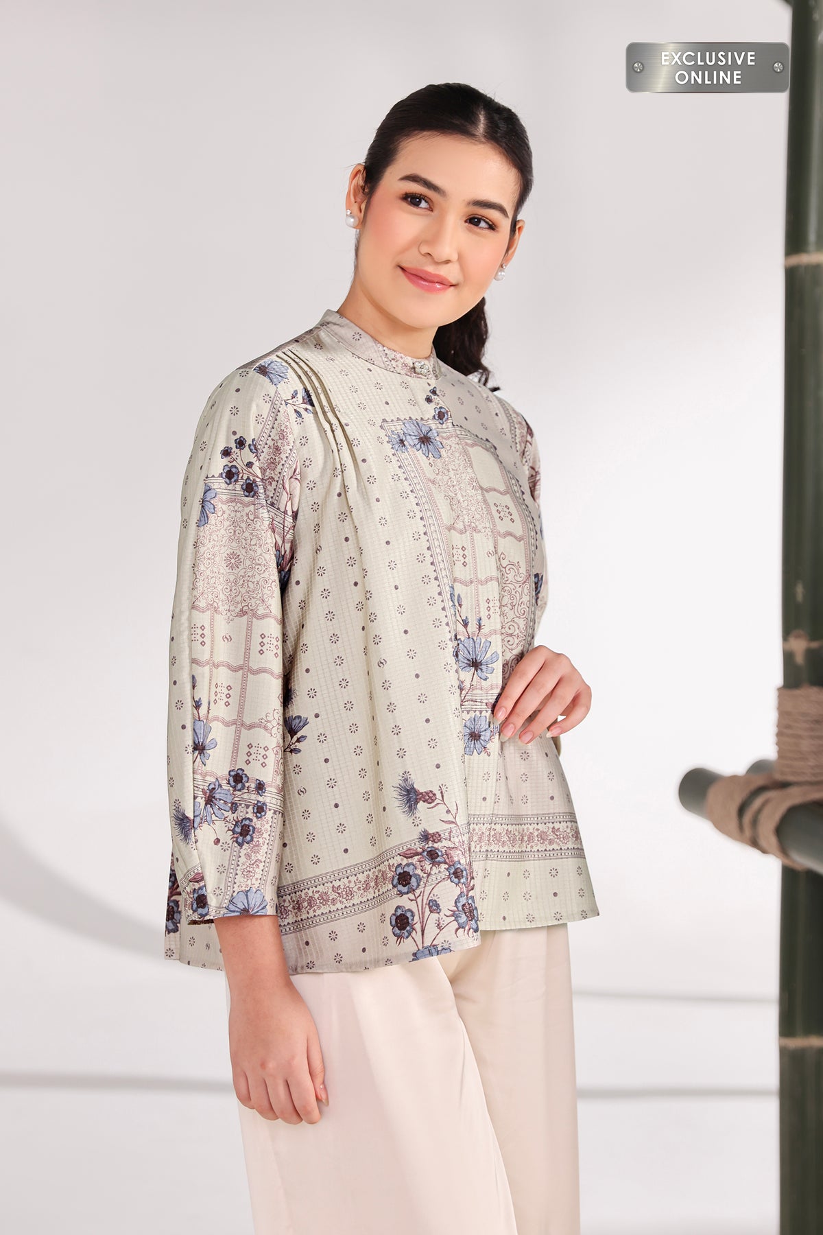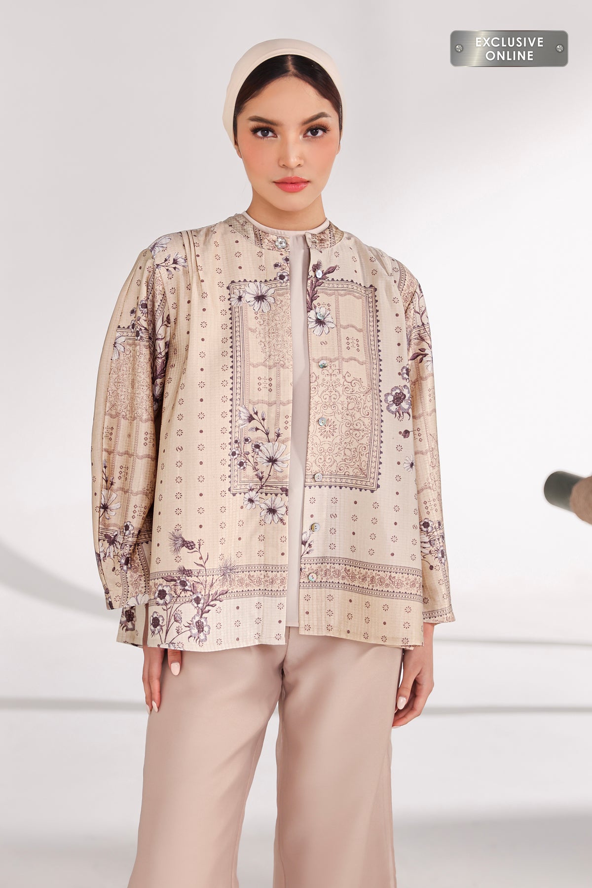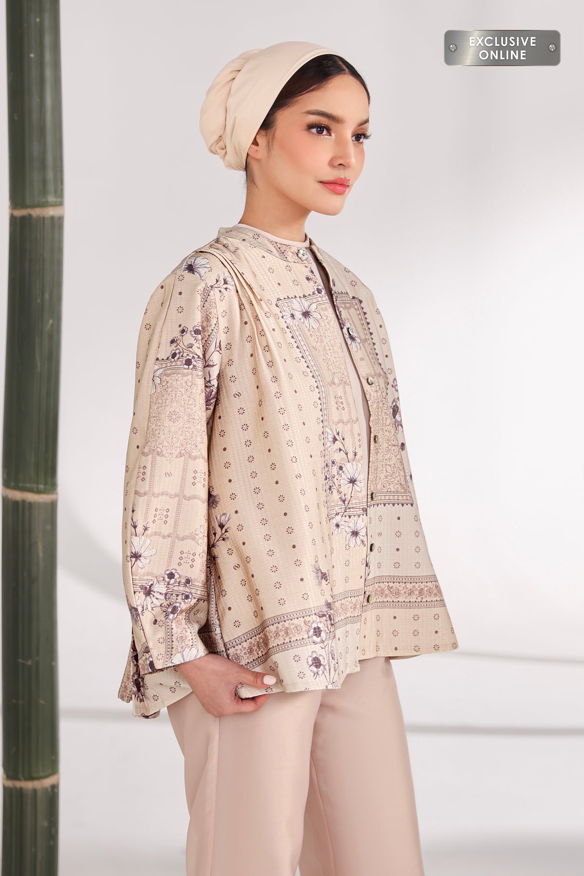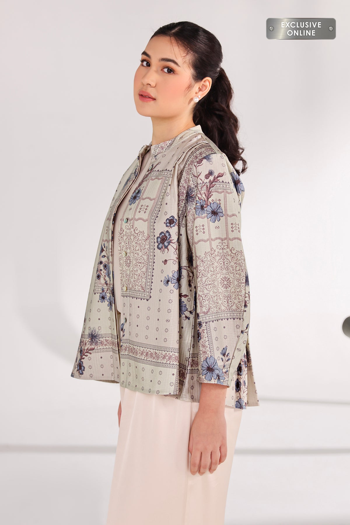 Outer ini hadir dengan pattern yang elegan dan berkarakter, memberikan sentuhan refined pada setiap tampilan. Siluetnya ringan dan nyaman dikenakan, mudah dipadukan untuk menciptakan look yang rapi, modern, dan effortlessly chic di berbagai kesempatan.