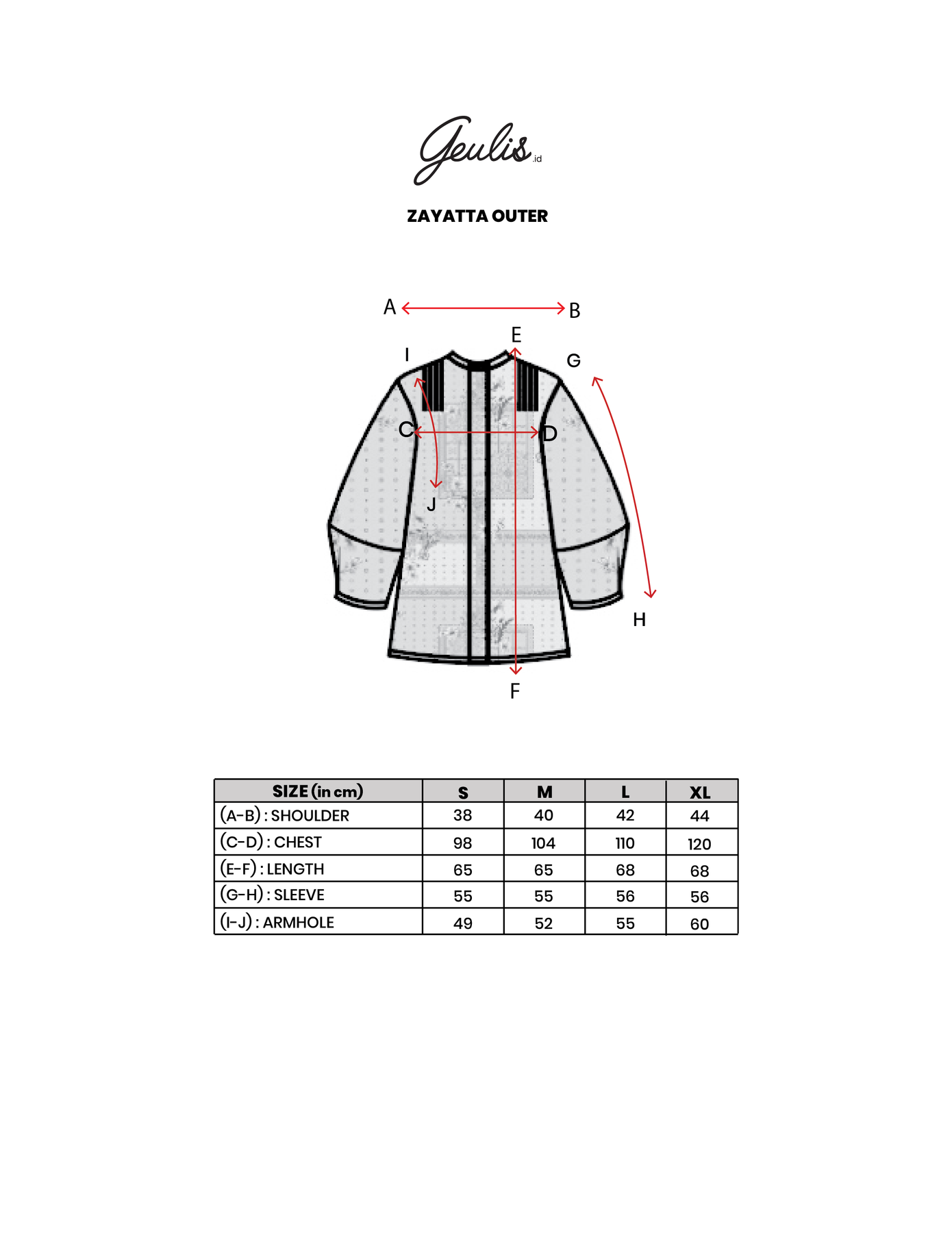 Panjang Outer: 65/65/68/68cm
