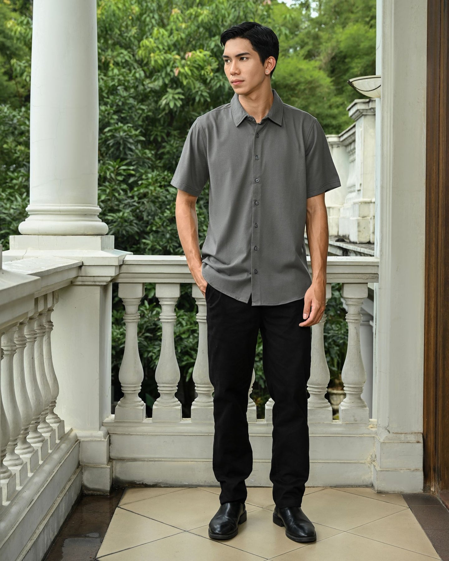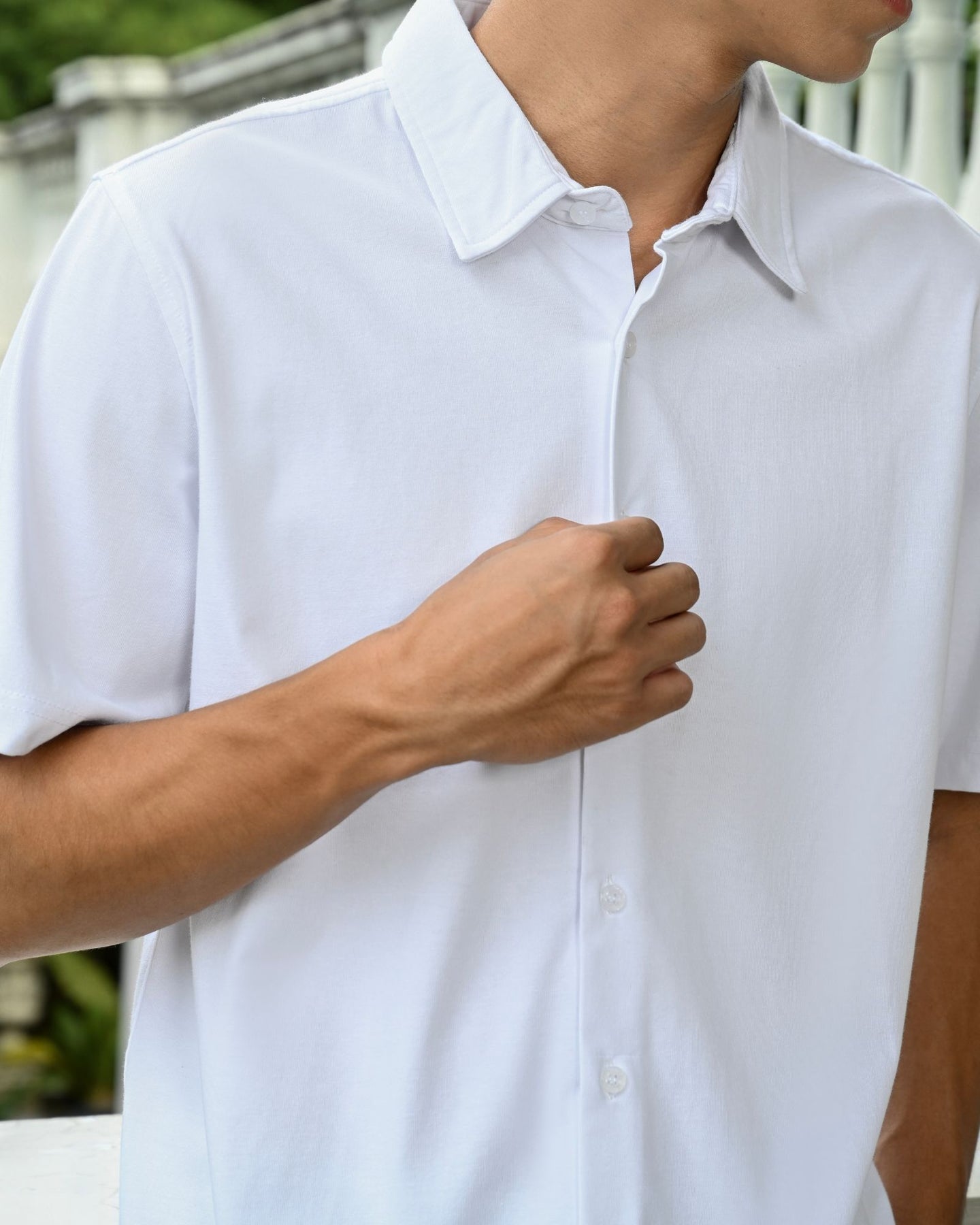Caille Shirt terbuat dari cotton stretch berkualitas dengan konstruksi single platting 215 GSM, memberikan kenyamanan breathable sekaligus daya tahan. Dengan desain clean, kancing custom berlogo, dan finishing premium, kemeja ini versatile untuk dipakai baik di suasana kasual maupun semi-formal. Tersedia dalam warna Black, Navy, Grey, dan White.