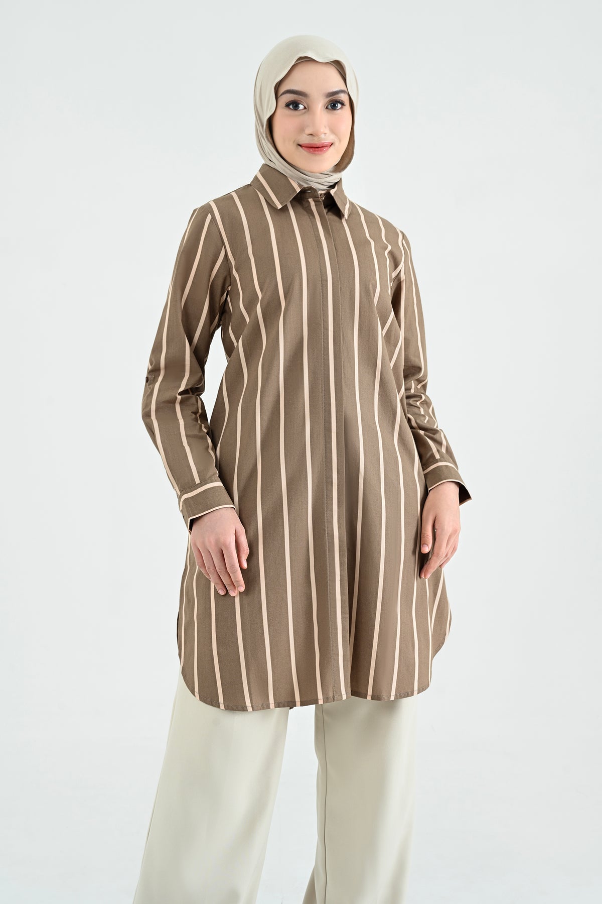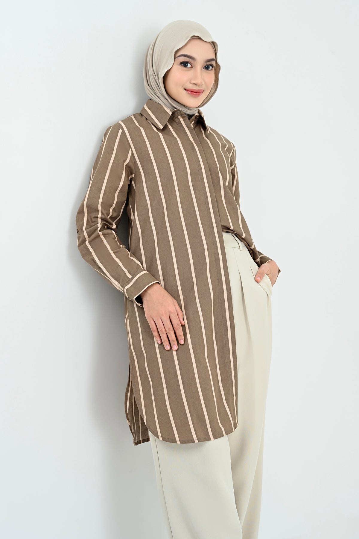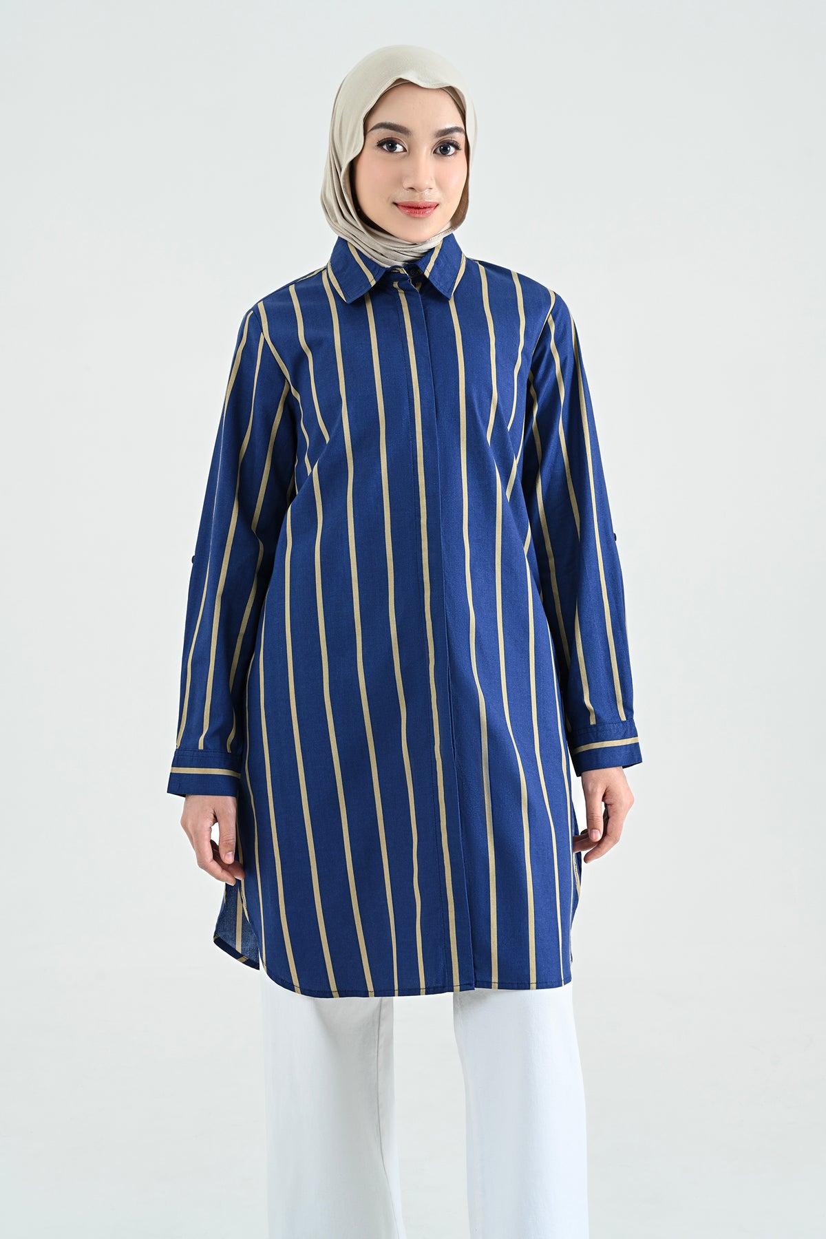 Didesain dengan pattern stripes yang timeless, tunik ini menghadirkan tampilan klasik yang tak lekang oleh waktu. Potongannya nyaman dan mudah dipadukan, membuatnya sempurna untuk gaya kasual hingga semi-formal.