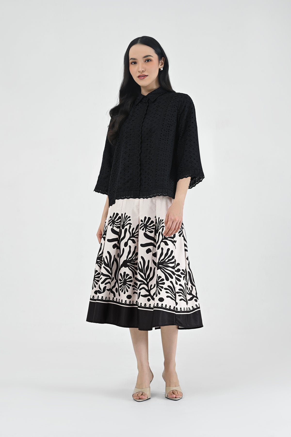 Didesain dengan detail embroidery yang anggun, shirt ini menghadirkan sentuhan elegan yang tetap terasa effortless. Materialnya nyaman untuk dipakai seharian.
