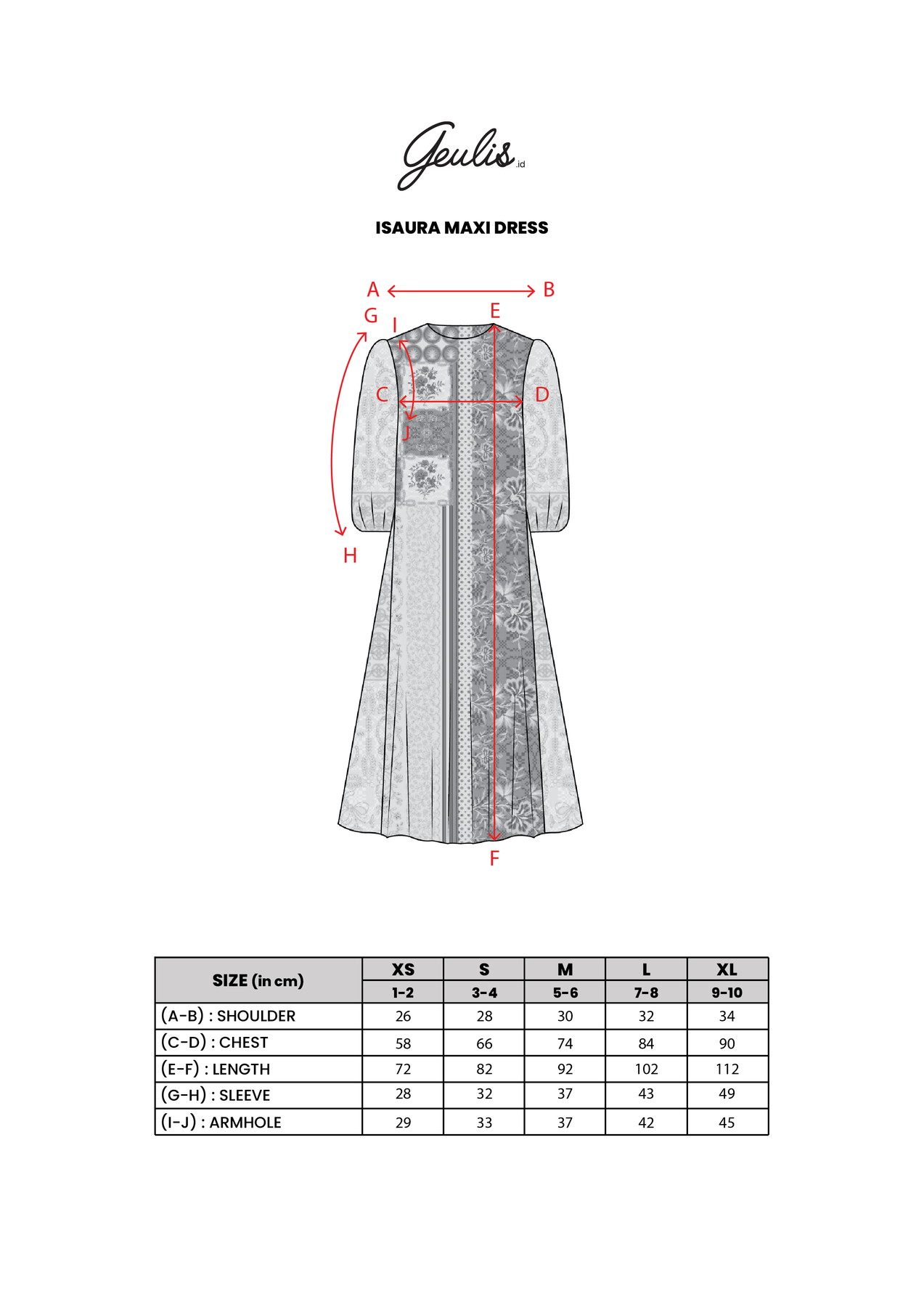 Panjang Dress: 72/82/92/102/112cm