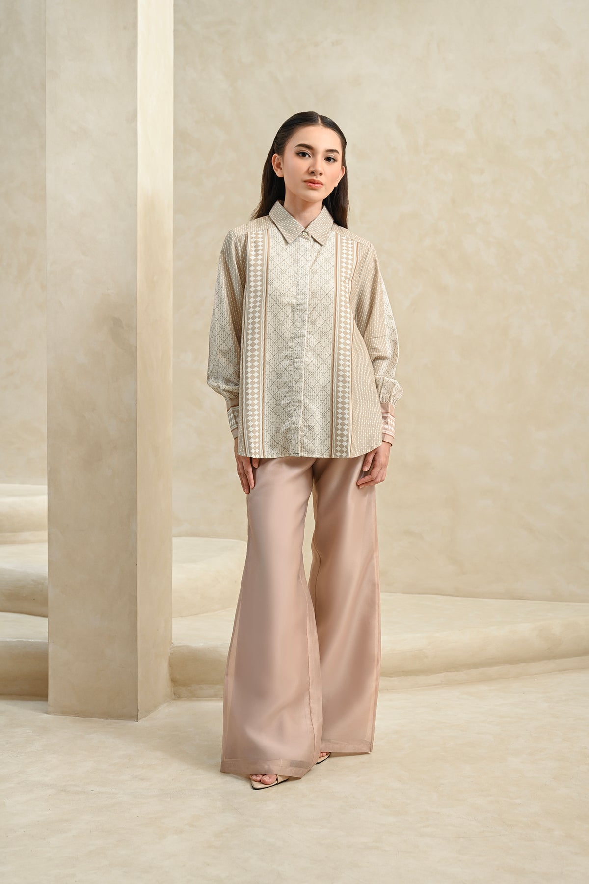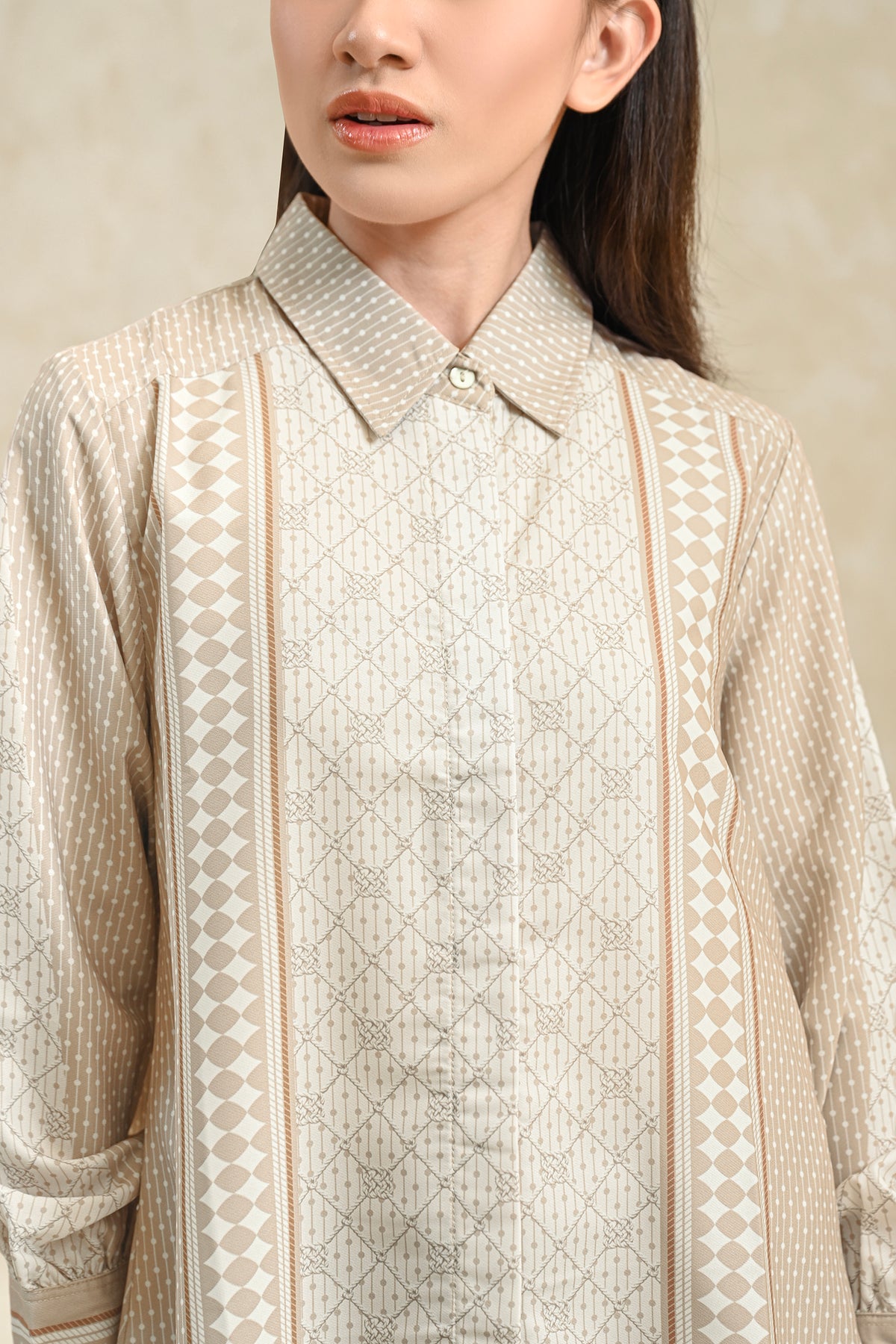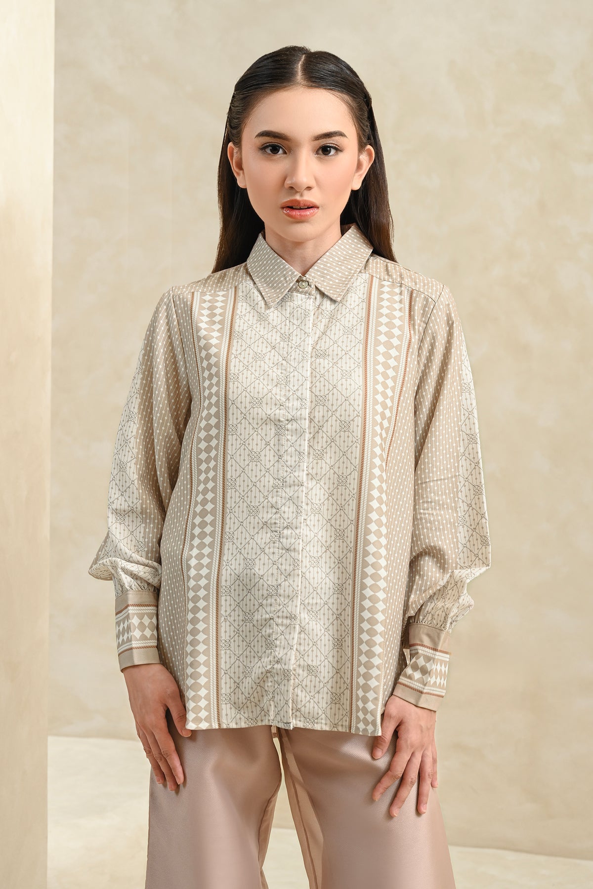 Memberikan kesan statement yang kuat, shirt ini dirancang dengan detail pattern yang tegas dan berkarakter. Perpaduan desain modern dan potongan yang nyaman membuatnya mudah dikenakan seharian, cocok untuk acara special.