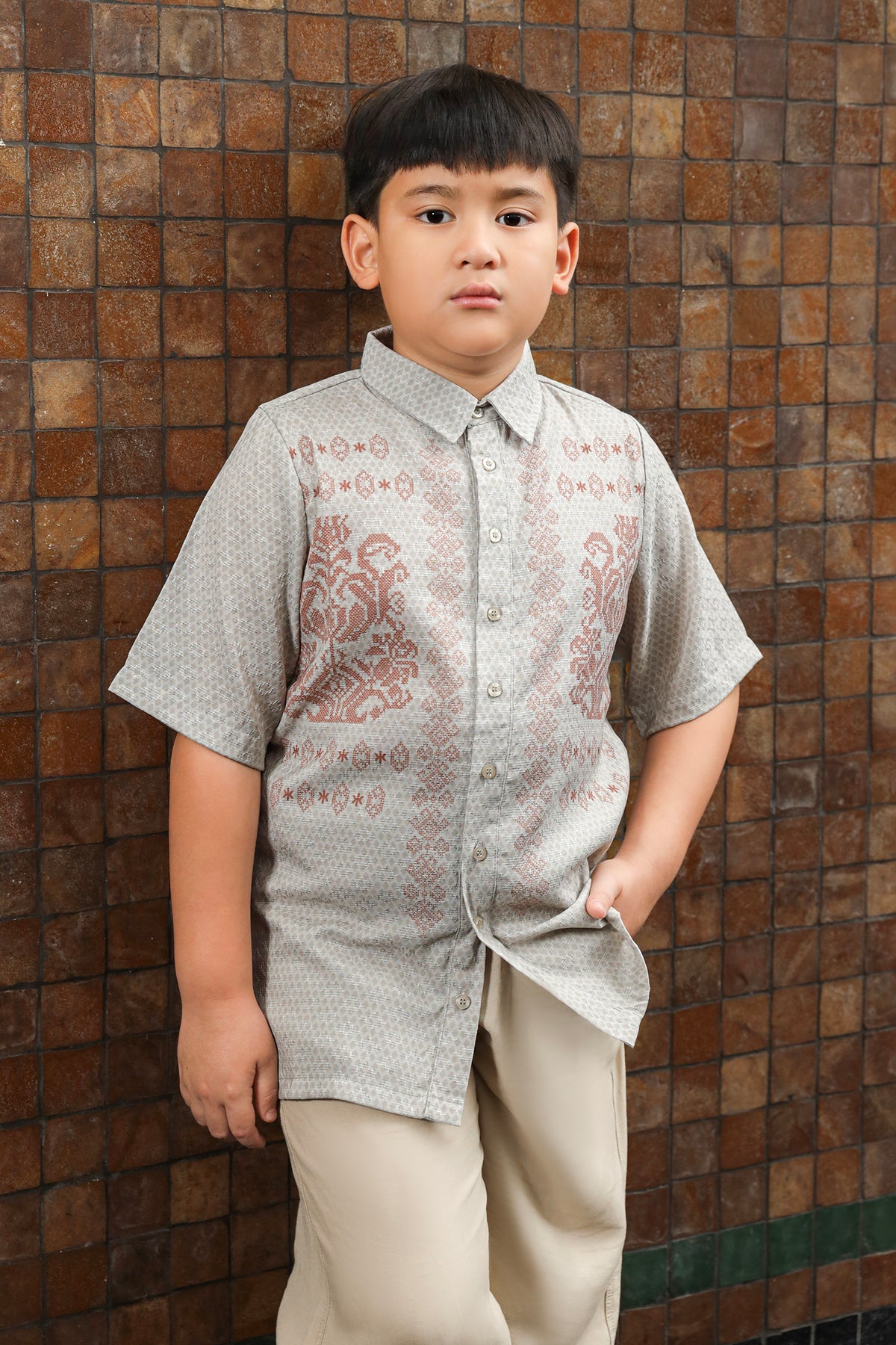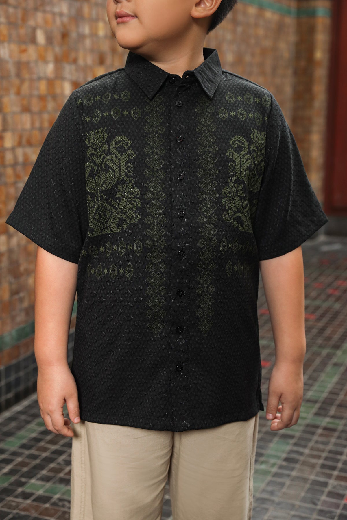 • Bukaan kancing full di bagian depan