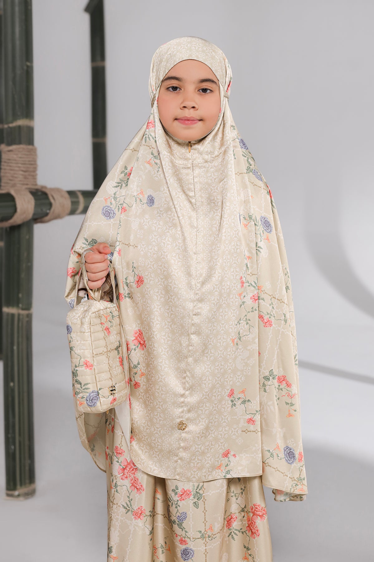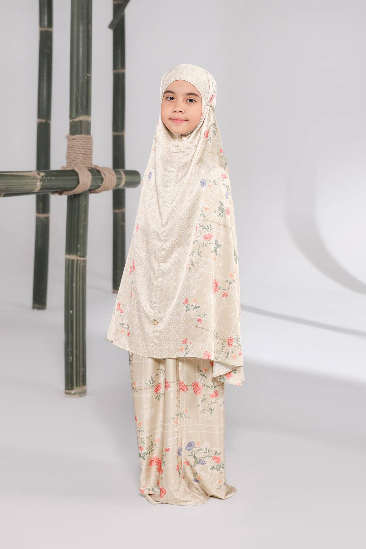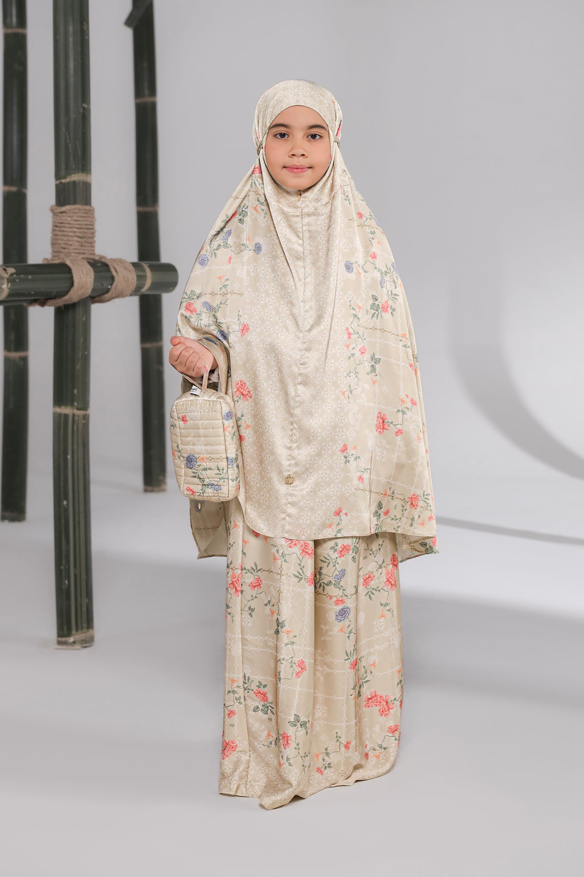 Prayer set ini dirancang dengan bahan lembut dan ringan agar nyaman dikenakan saat beribadah. Desainnya manis dan pas di badan, memberi ruang gerak yang leluasa sekaligus menghadirkan tampilan rapi dan menggemaskan di momen spesial si kecil.