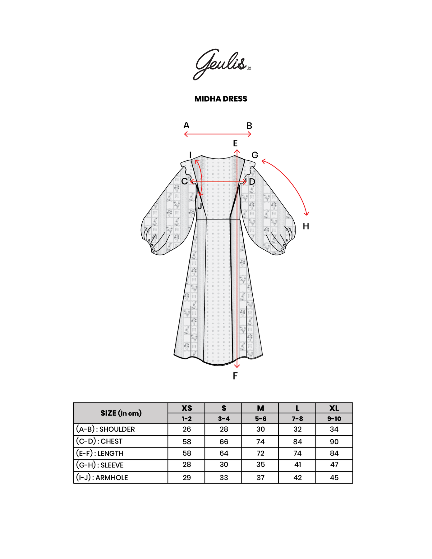 Panjang Midi Dress: 58/64/72/76/84cm