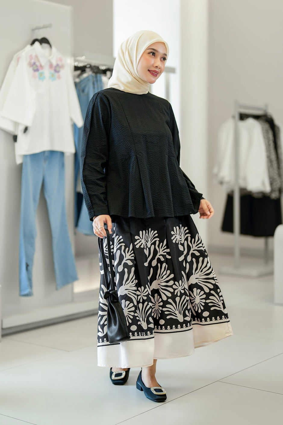 Skirt ini memberikan kenyamanan maksimal tanpa mengorbankan gaya. Cuttingannya modern dengan sentuhan flowy, menjadikannya mudah dipadukan dengan berbagai atasan untuk look casual hingga semi-formal.