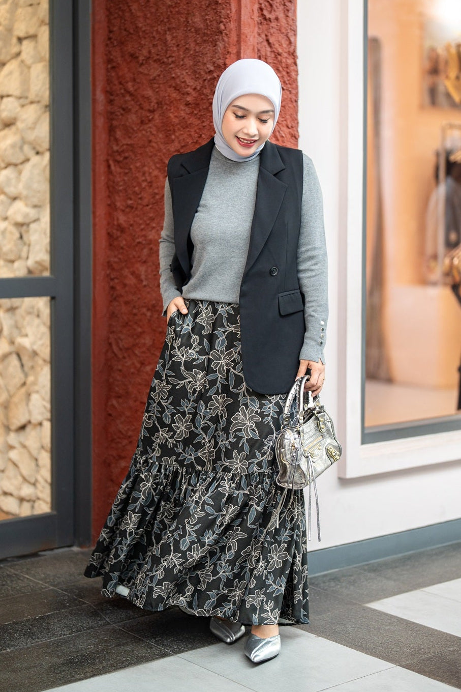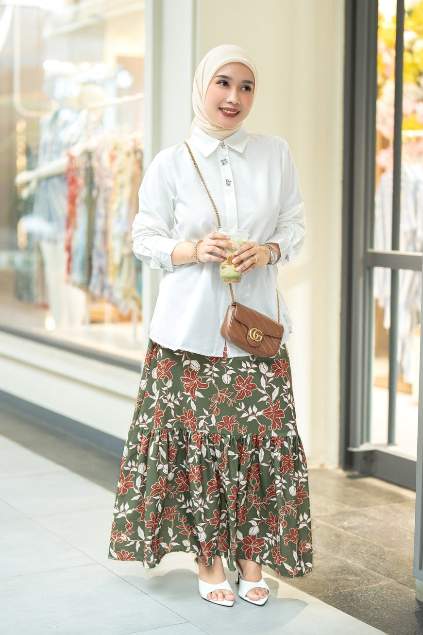 Dengan sentuhan ruffle details yang playful dan chic, rok ini jadi pilihan versatile untuk tampilan feminin sehari-hari maupun kesempatan spesial.