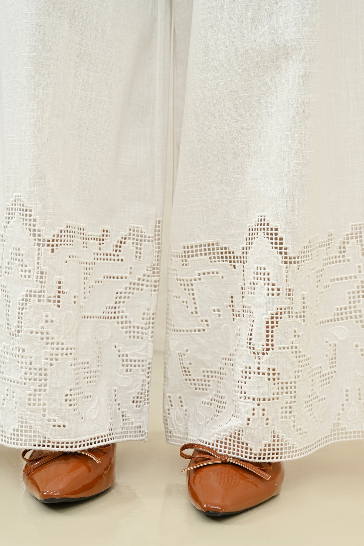 • Cutwork embroidery halus di bagian bawah