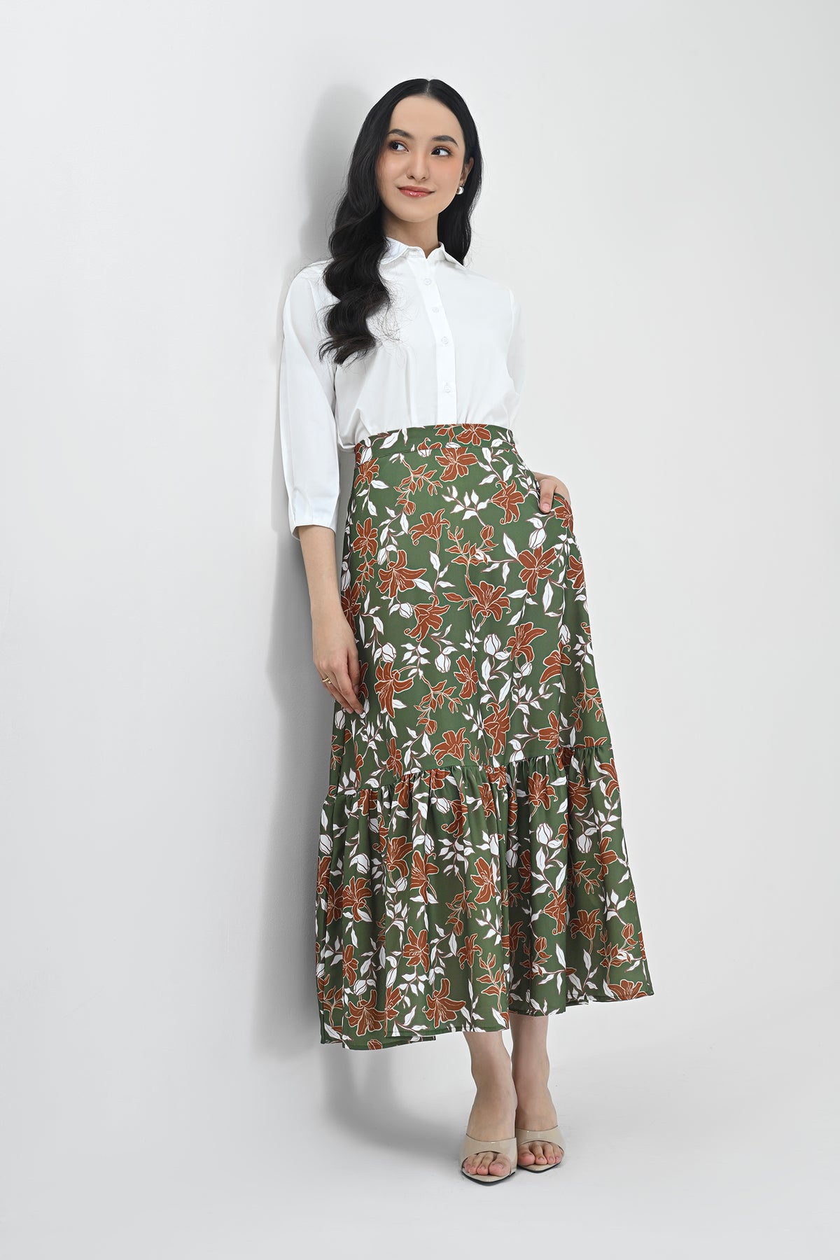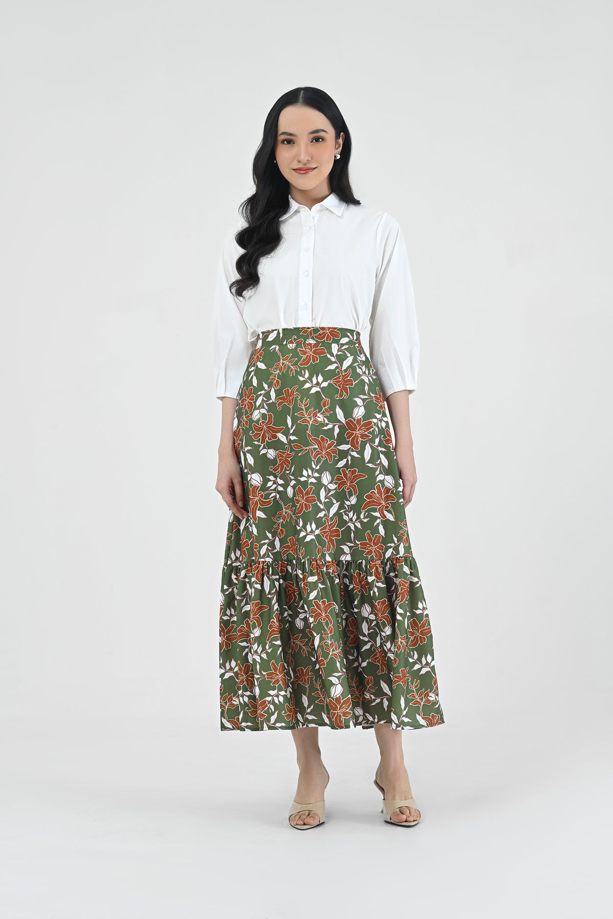 Dengan sentuhan ruffle details yang playful dan chic, rok ini jadi pilihan versatile untuk tampilan feminin sehari-hari maupun kesempatan spesial.