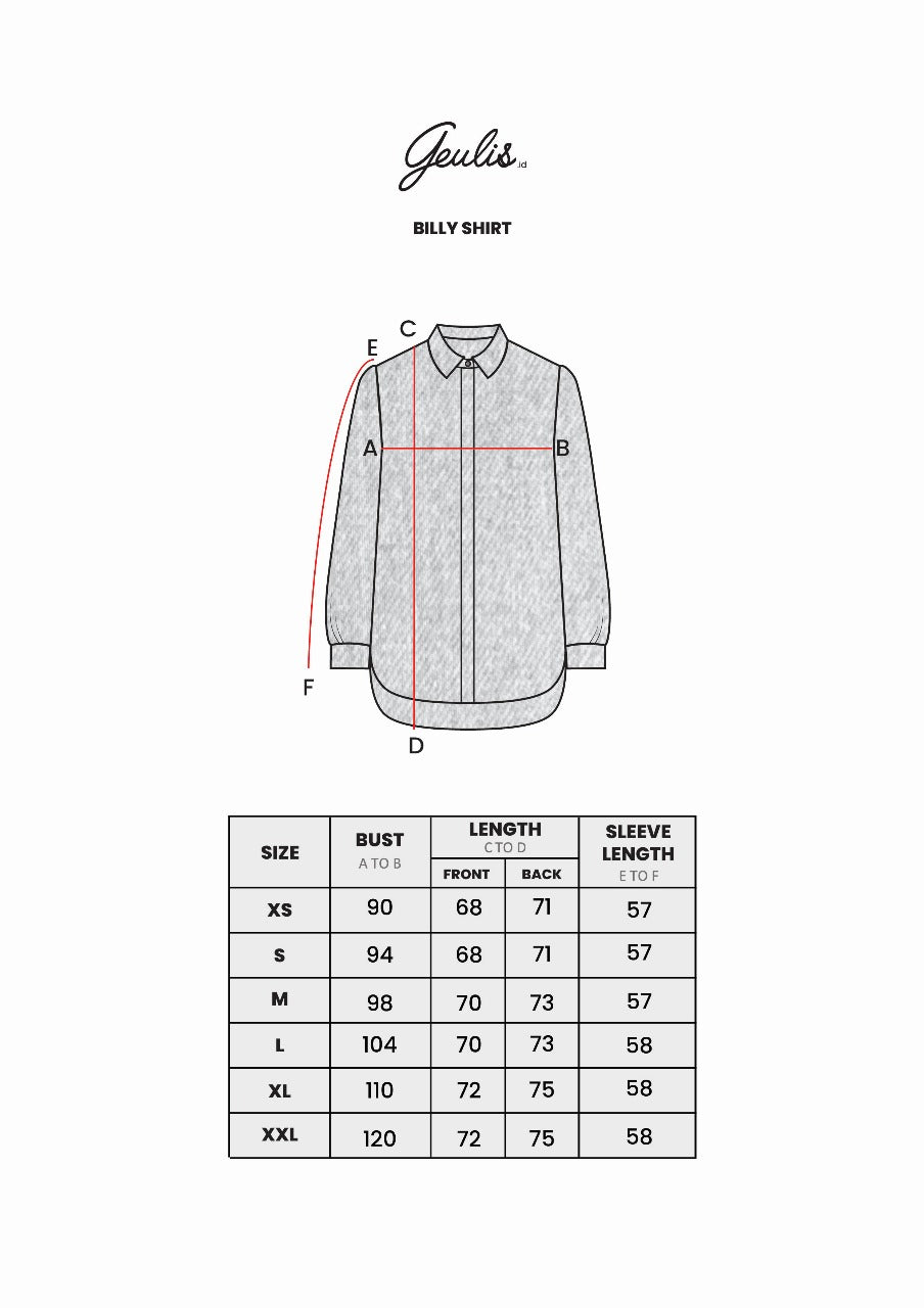 Desain kerah klasik, full buttons, dan detail embroidery kecil di sisi depan untuk sentuhan yang subtle.