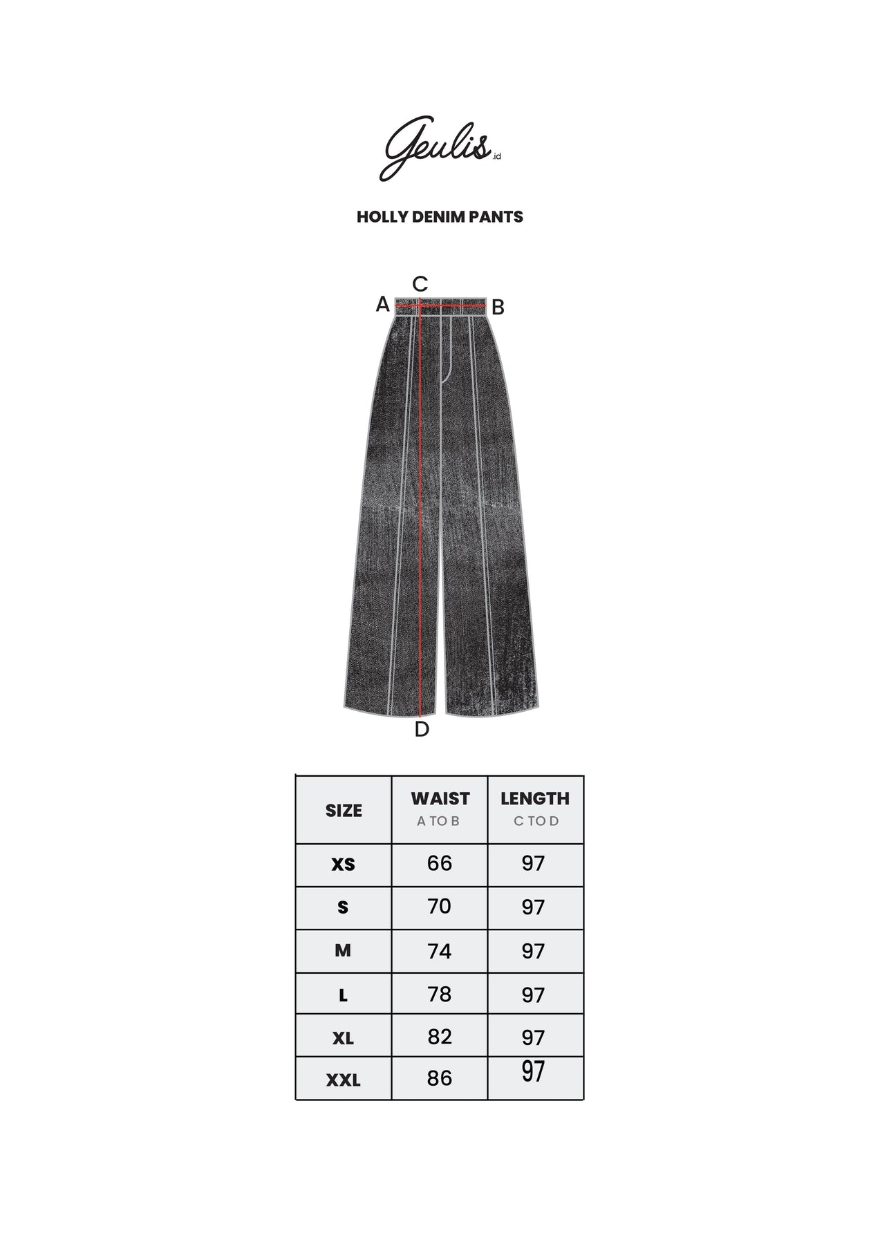 Celana denim high-waist dengan potongan wide leg yang clean dan modern.