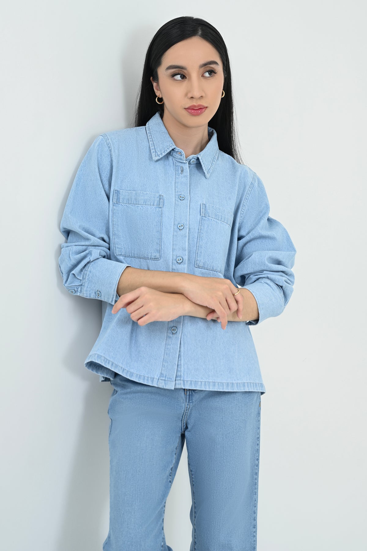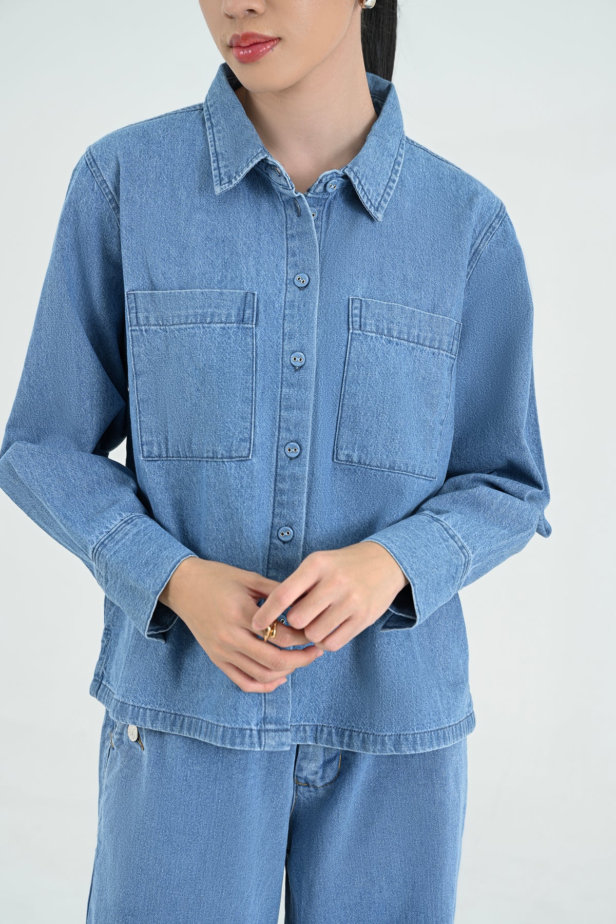 Kemeja denim dengan siluet relaxed yang effortless & modern.