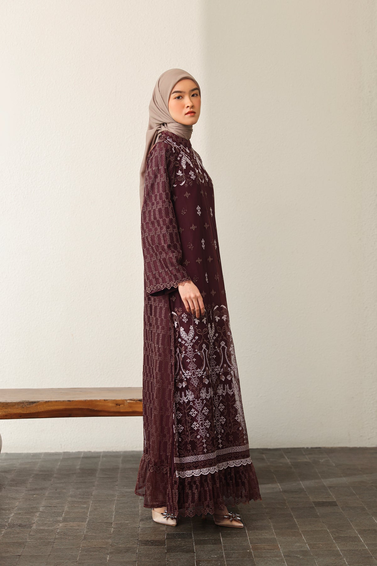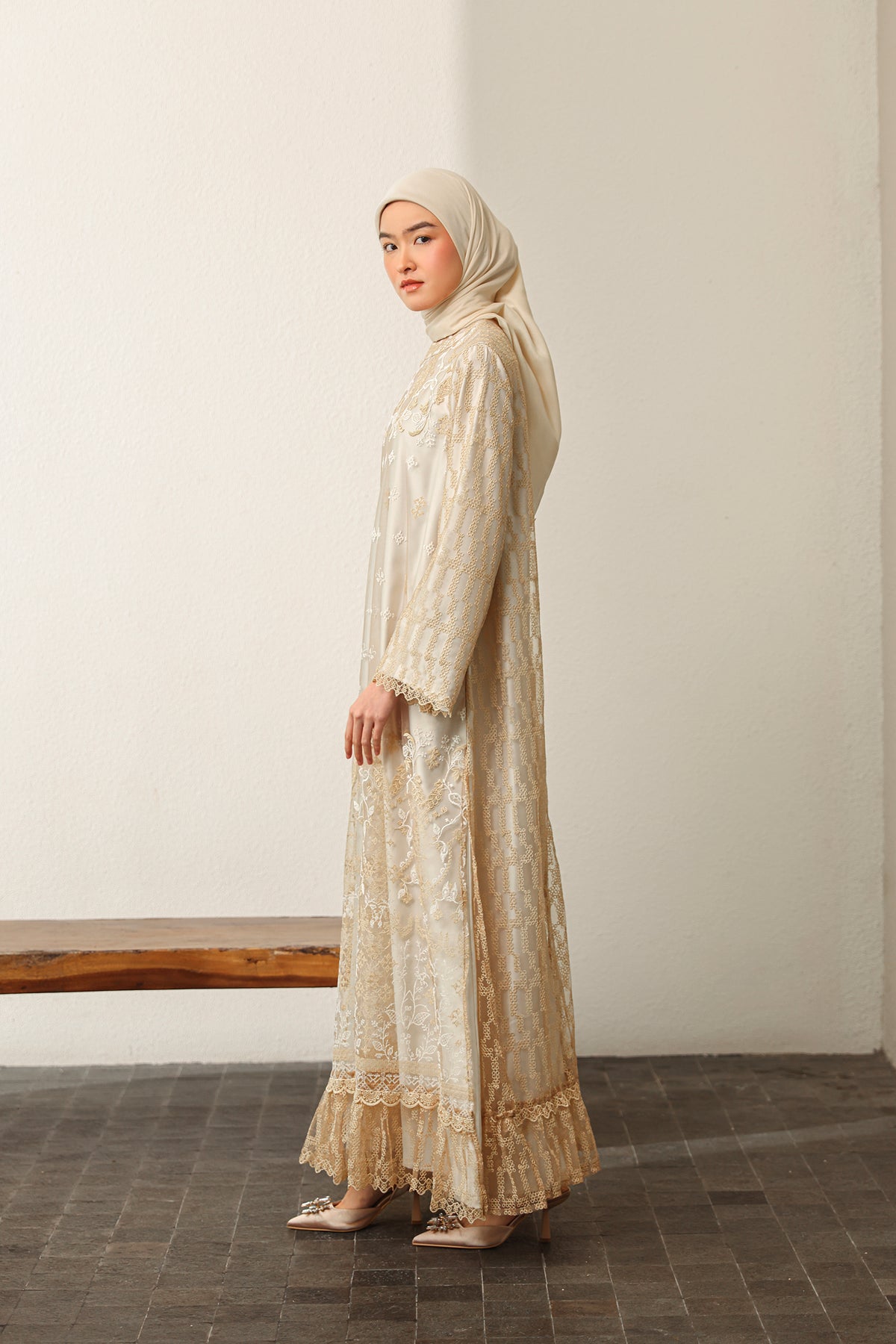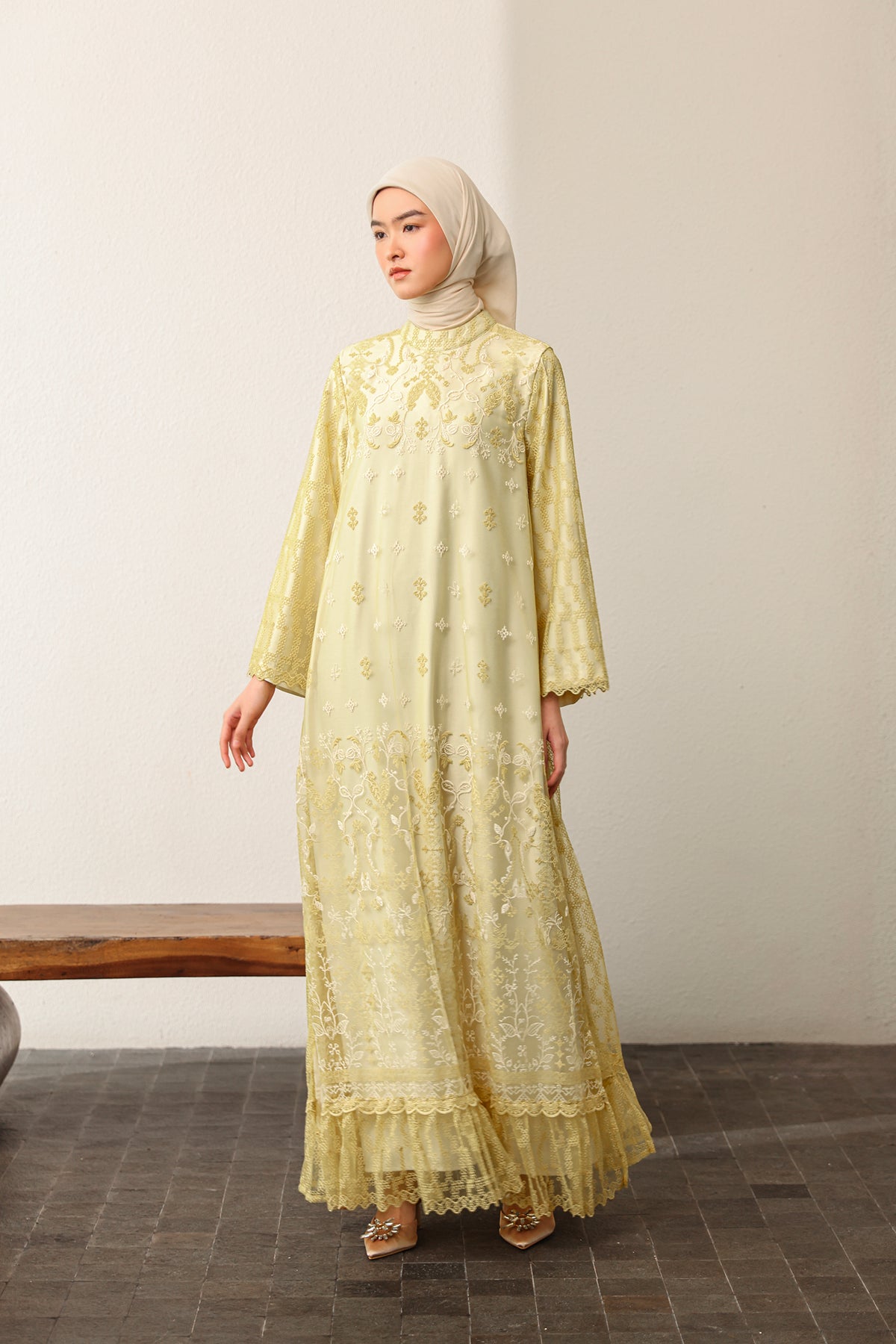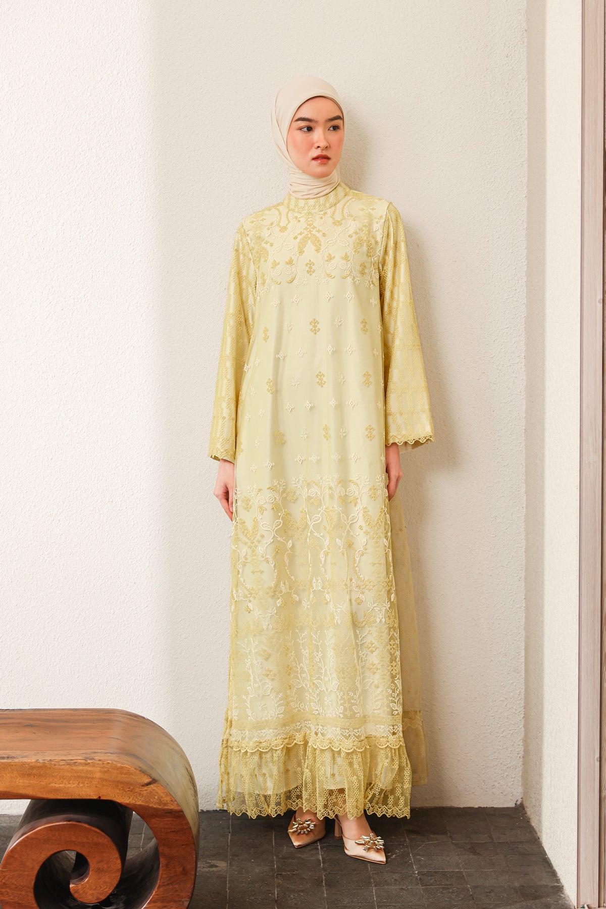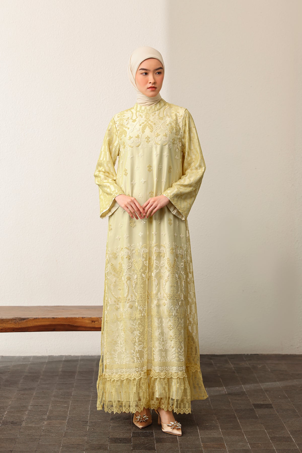 Memberikan sentuhan modern yang elegan, dress ini dilengkapi slit details yang menciptakan siluet lebih dinamis dan anggun. Nyaman dikenakan dengan potongan yang jatuh cantik, sempurna untuk tampil effortless di berbagai momen Raya.