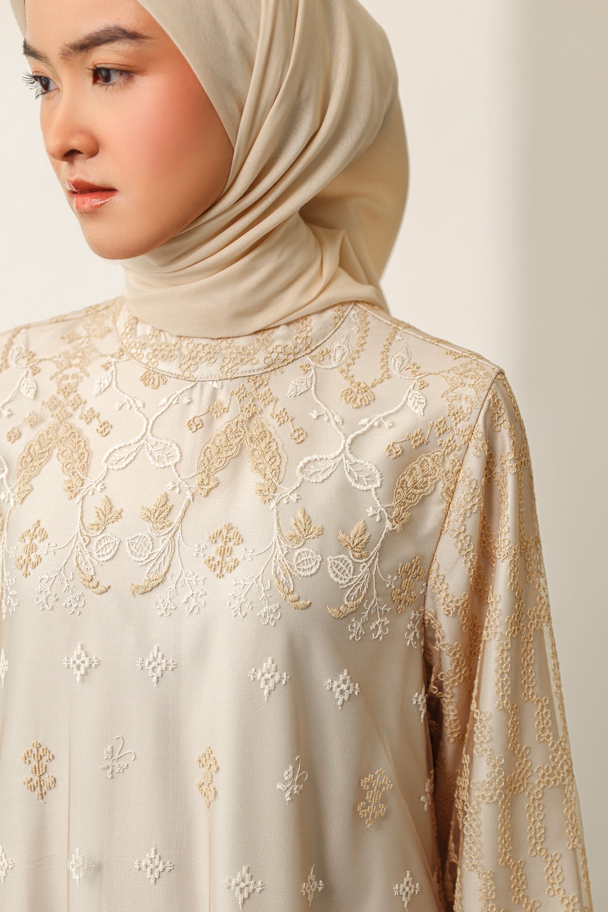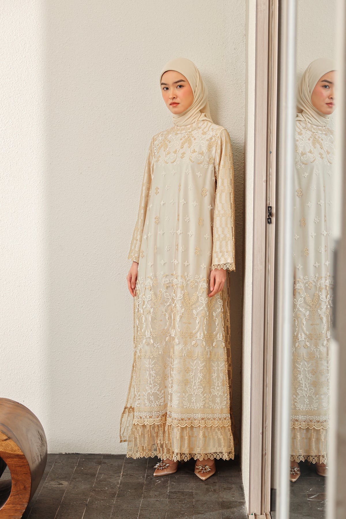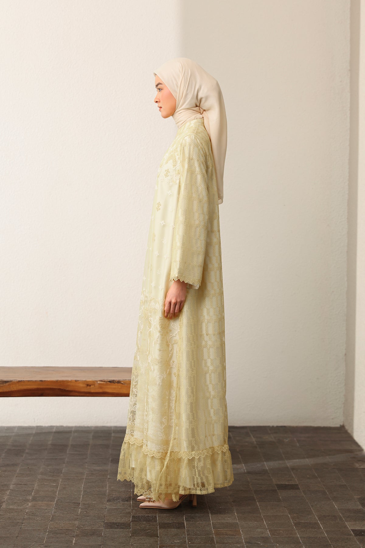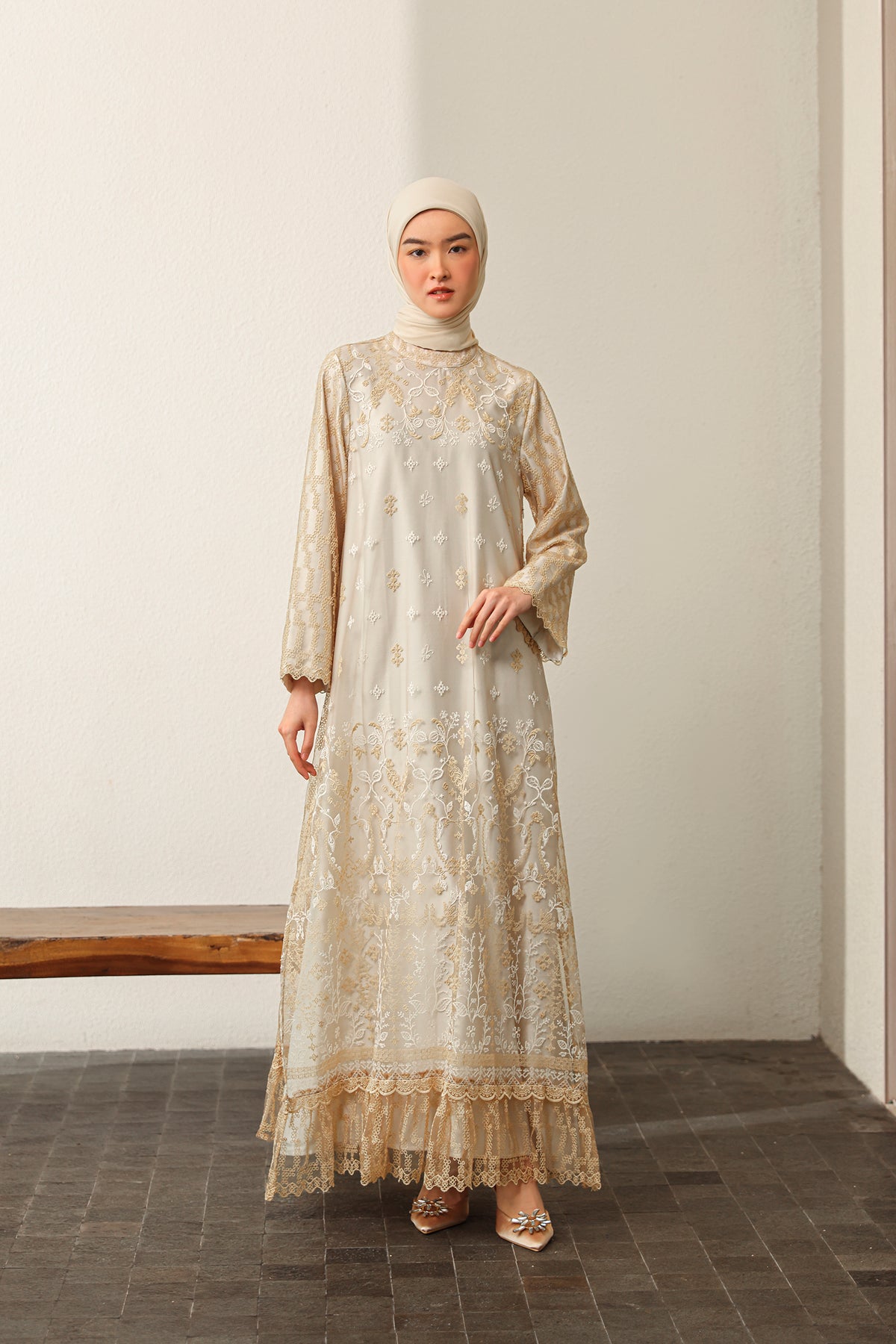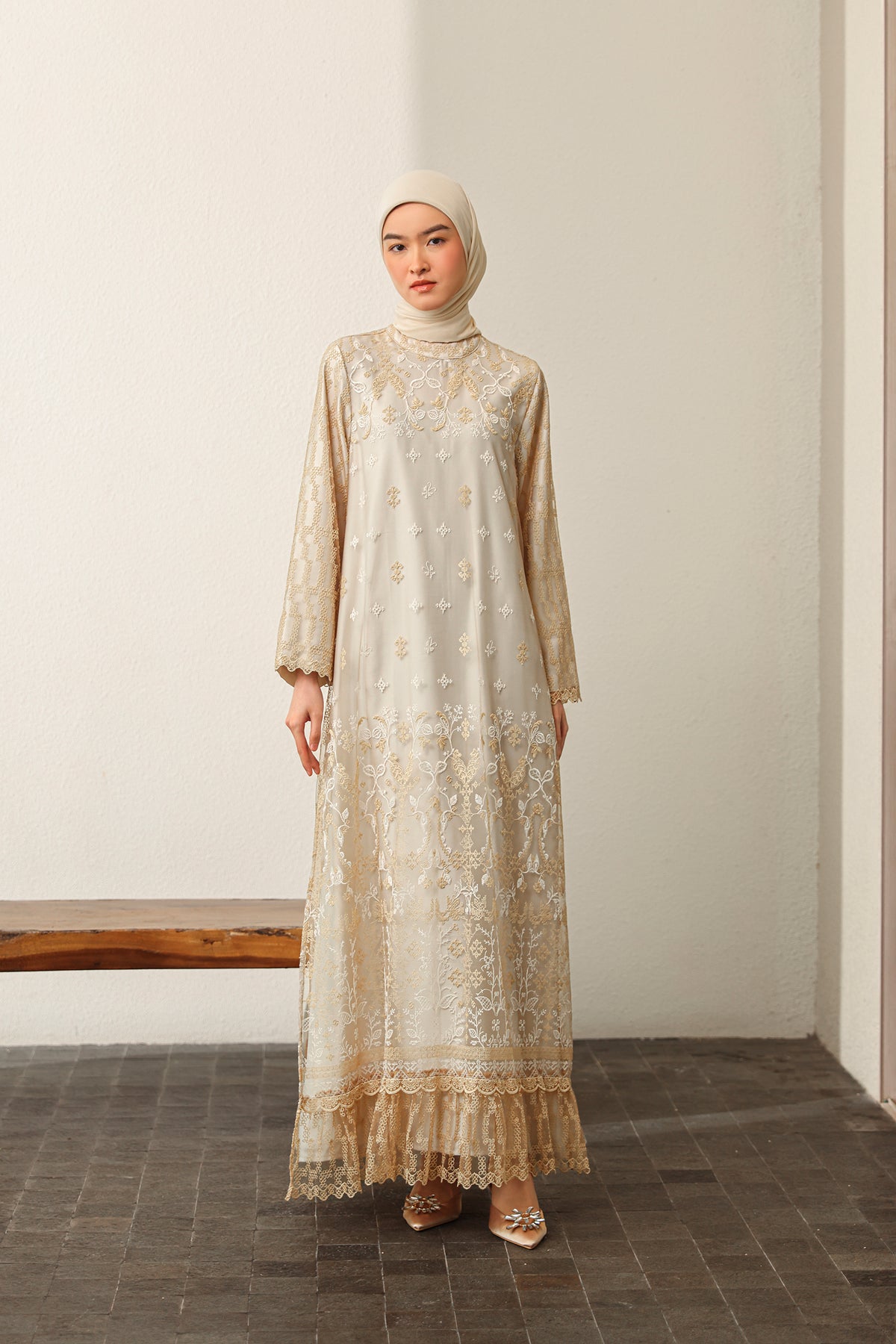 Memberikan sentuhan modern yang elegan, dress ini dilengkapi slit details yang menciptakan siluet lebih dinamis dan anggun. Nyaman dikenakan dengan potongan yang jatuh cantik, sempurna untuk tampil effortless di berbagai momen Raya.
