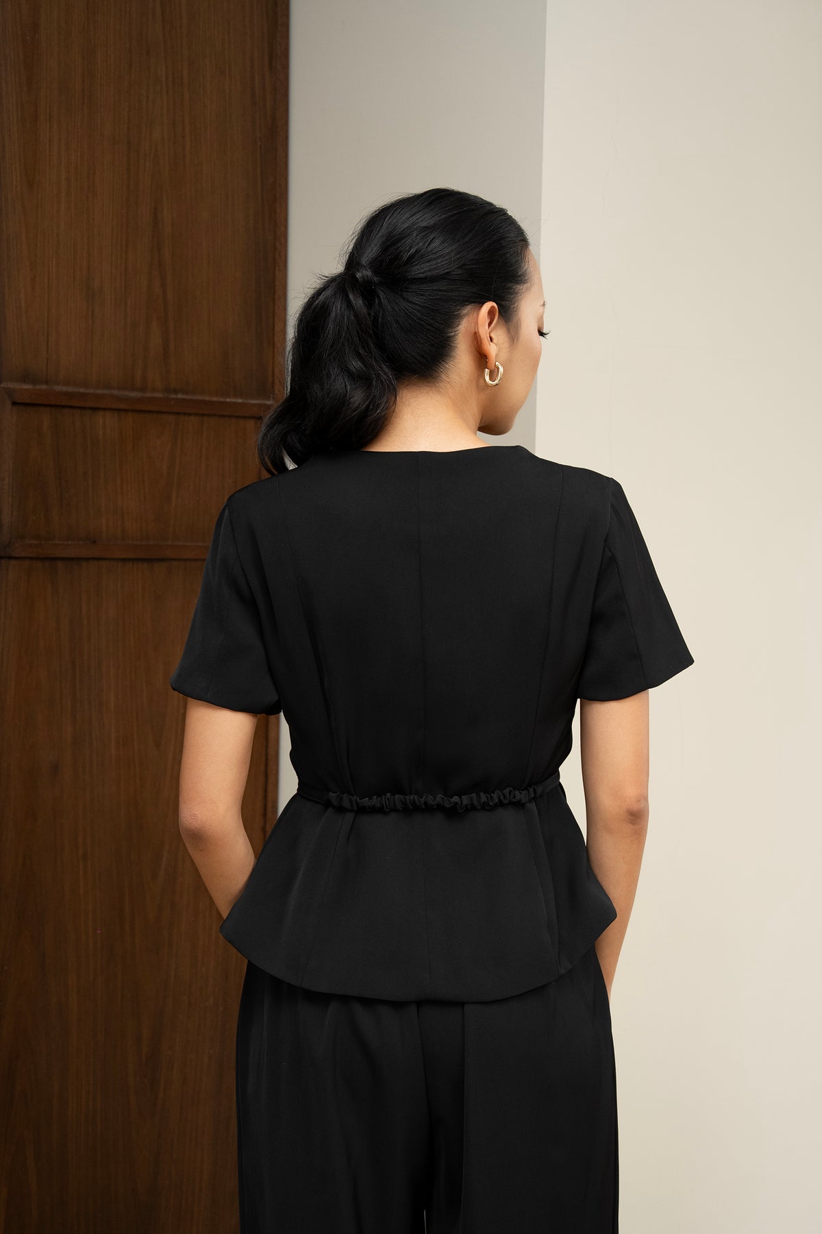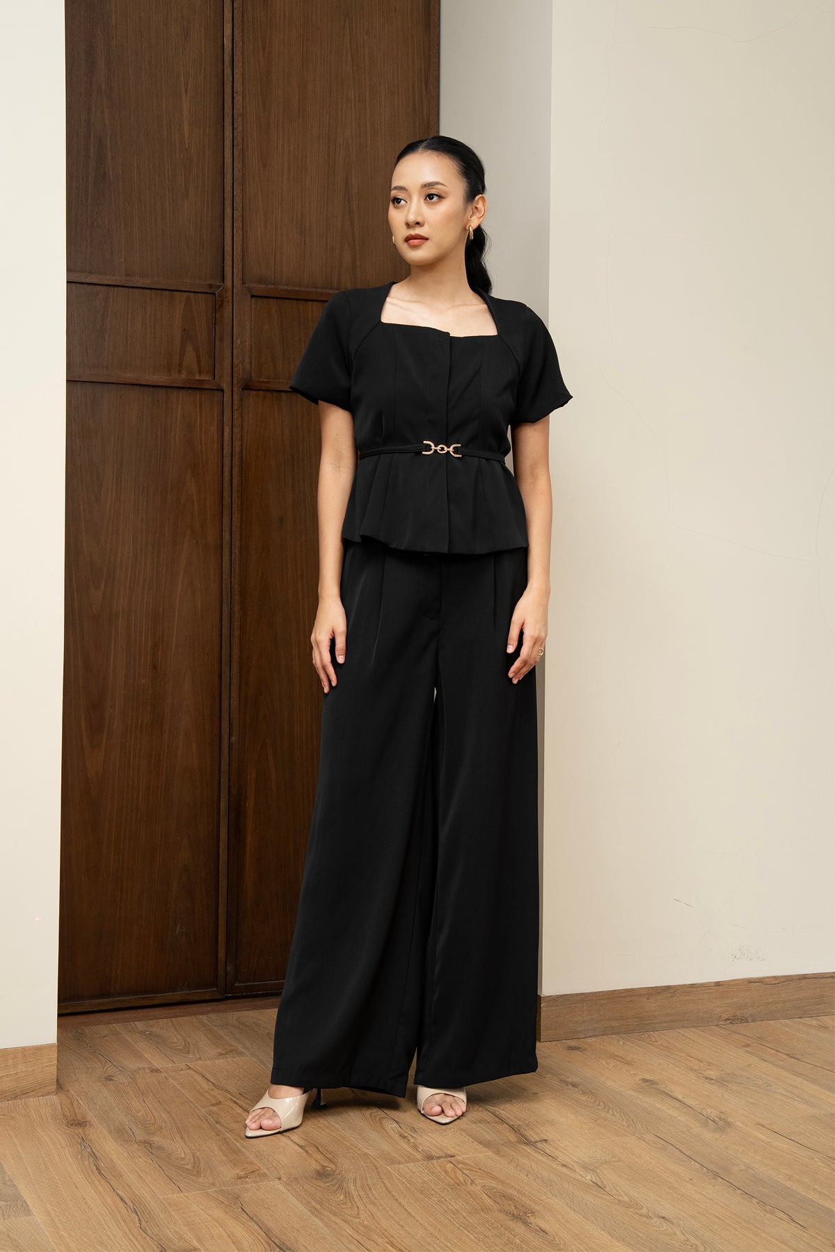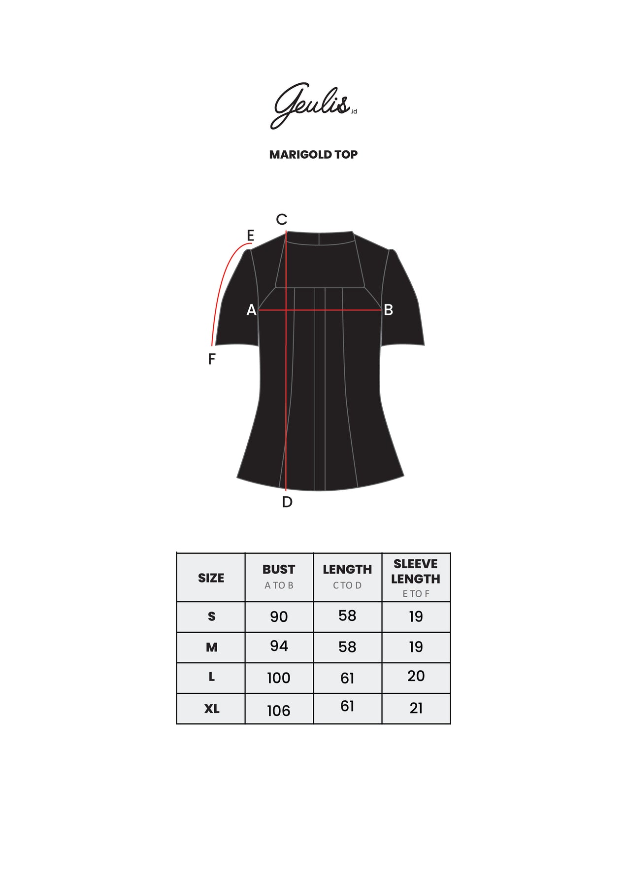 Soft structure, modern charm — Marigold Top dibuat dari premium polyester twill dengan tekstur lembut dan jatuh elegan. Detail square neckline dan di lengkapi belt memberi siluet feminin yang seimbang antara formal dan effortless luxury.