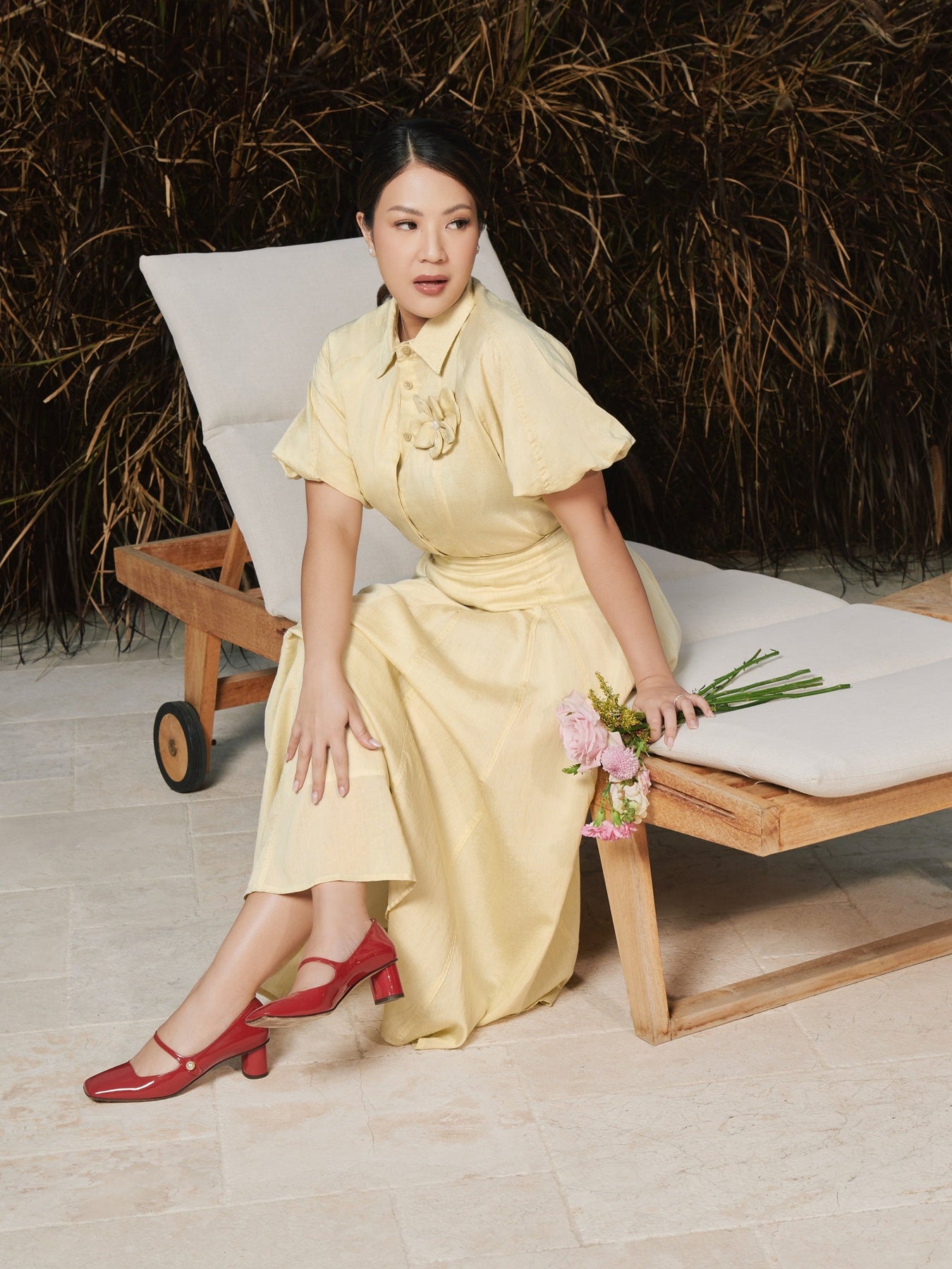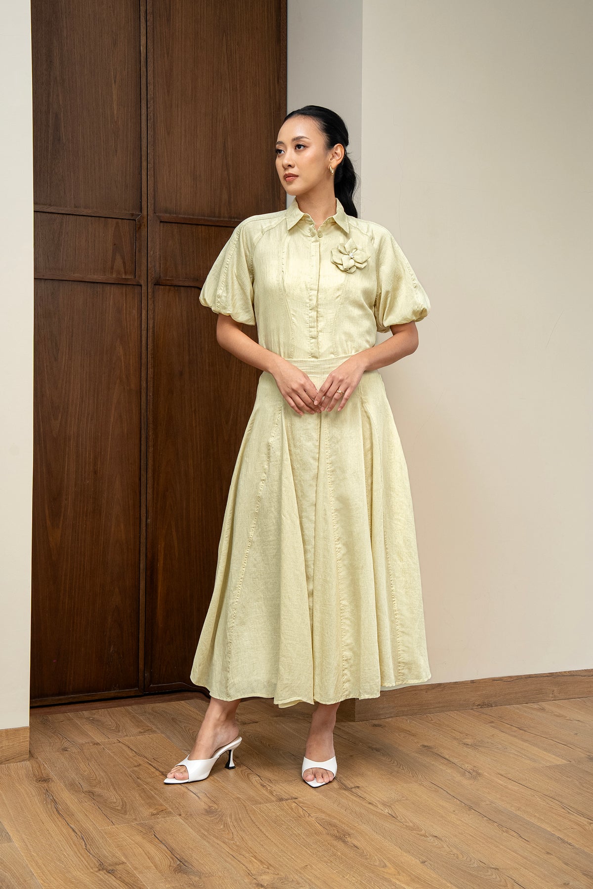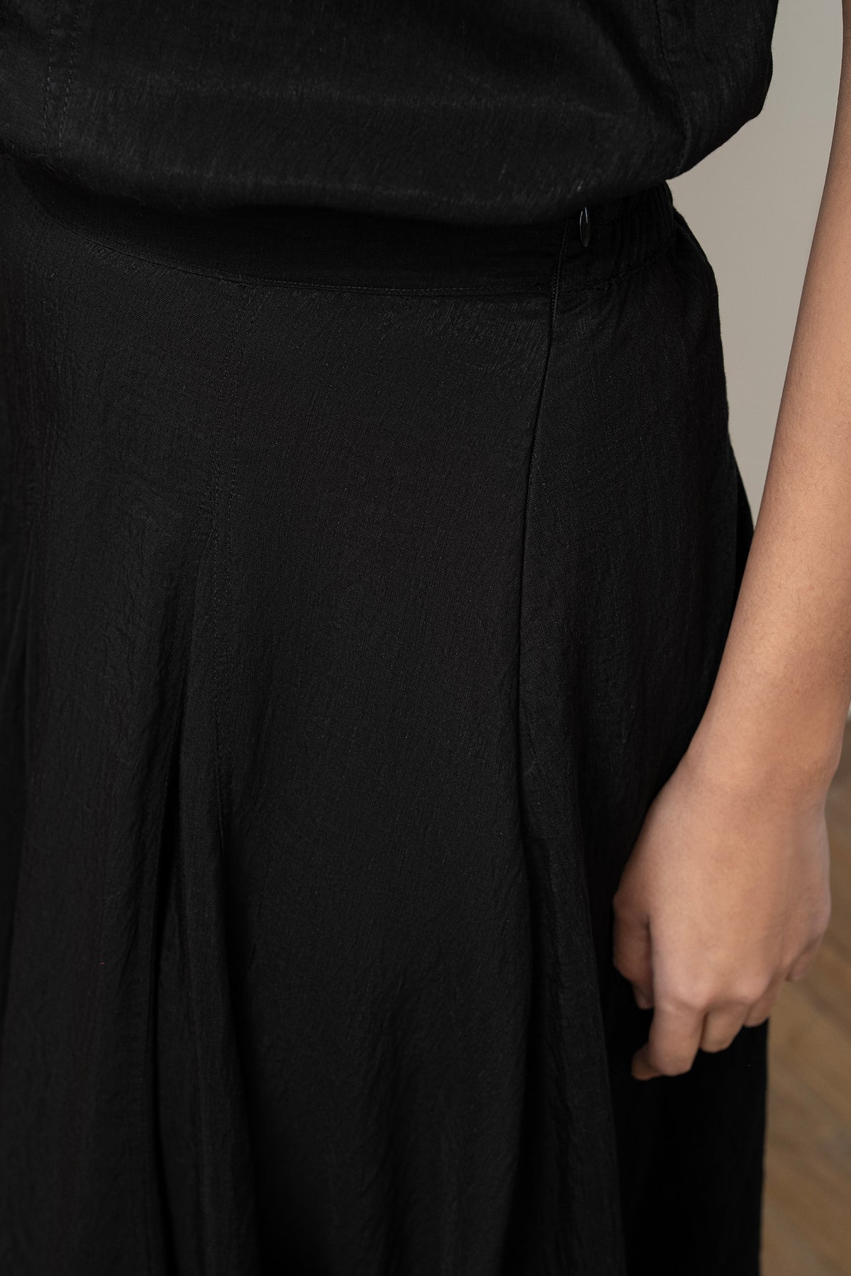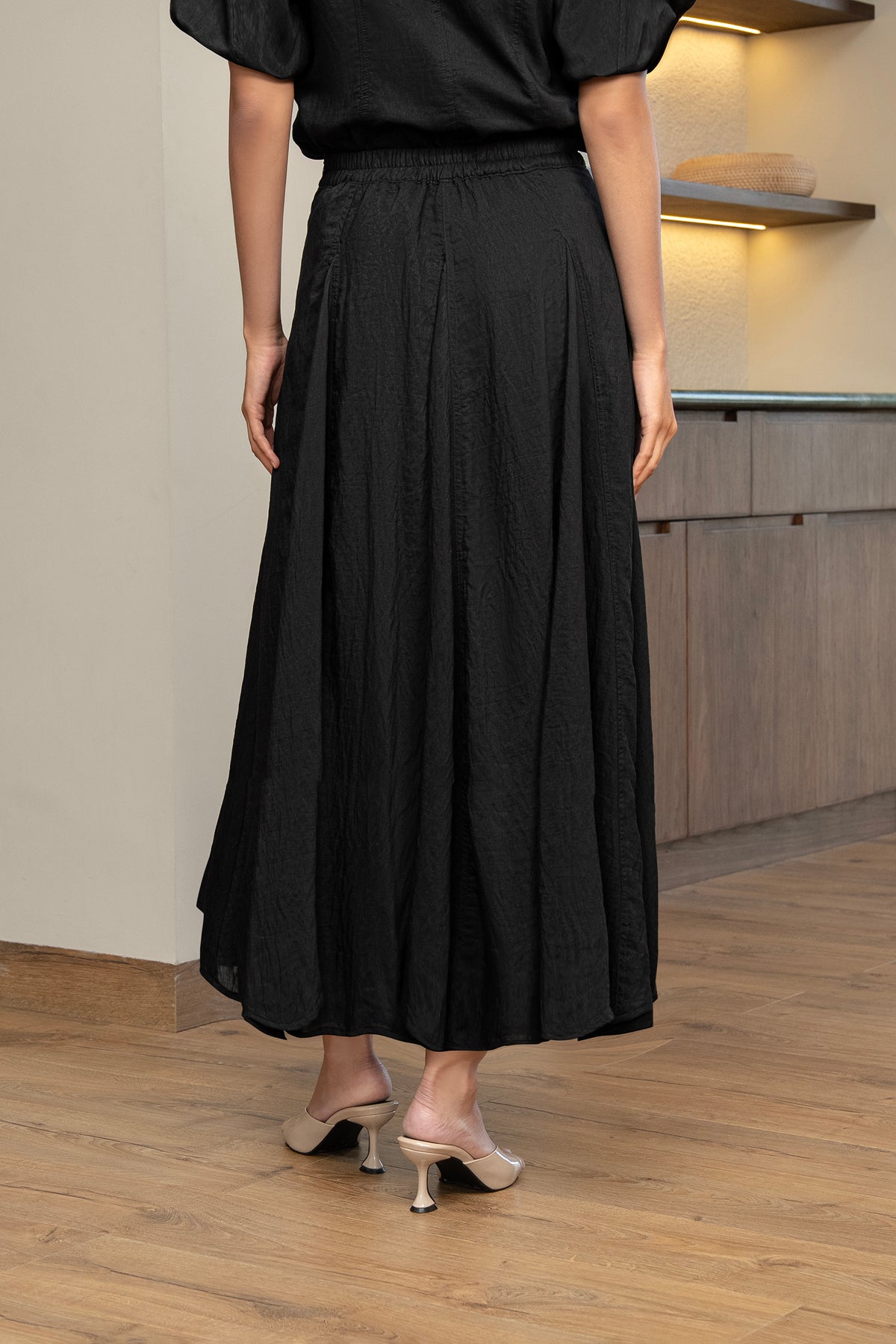 Potongan A-line flowy dengan tekstur lembut menghadirkan siluet elegan yang bergerak anggun di setiap langkah.