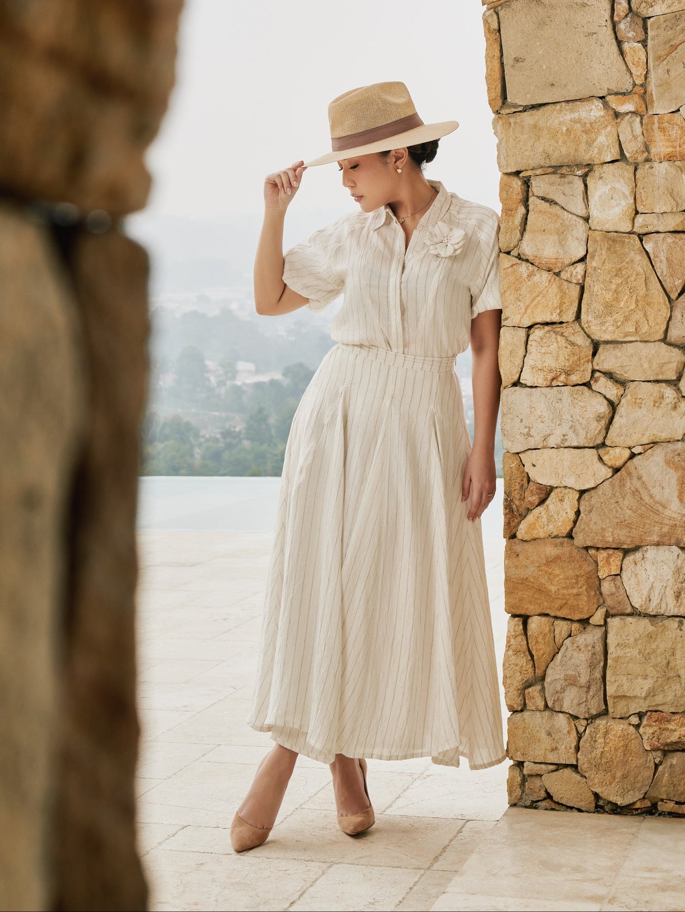 Refined and timeless — Sae Skirt dibuat dari linen blend cotton dengan full lining untuk kenyamanan ekstra dan tampilan yang lebih rapi.