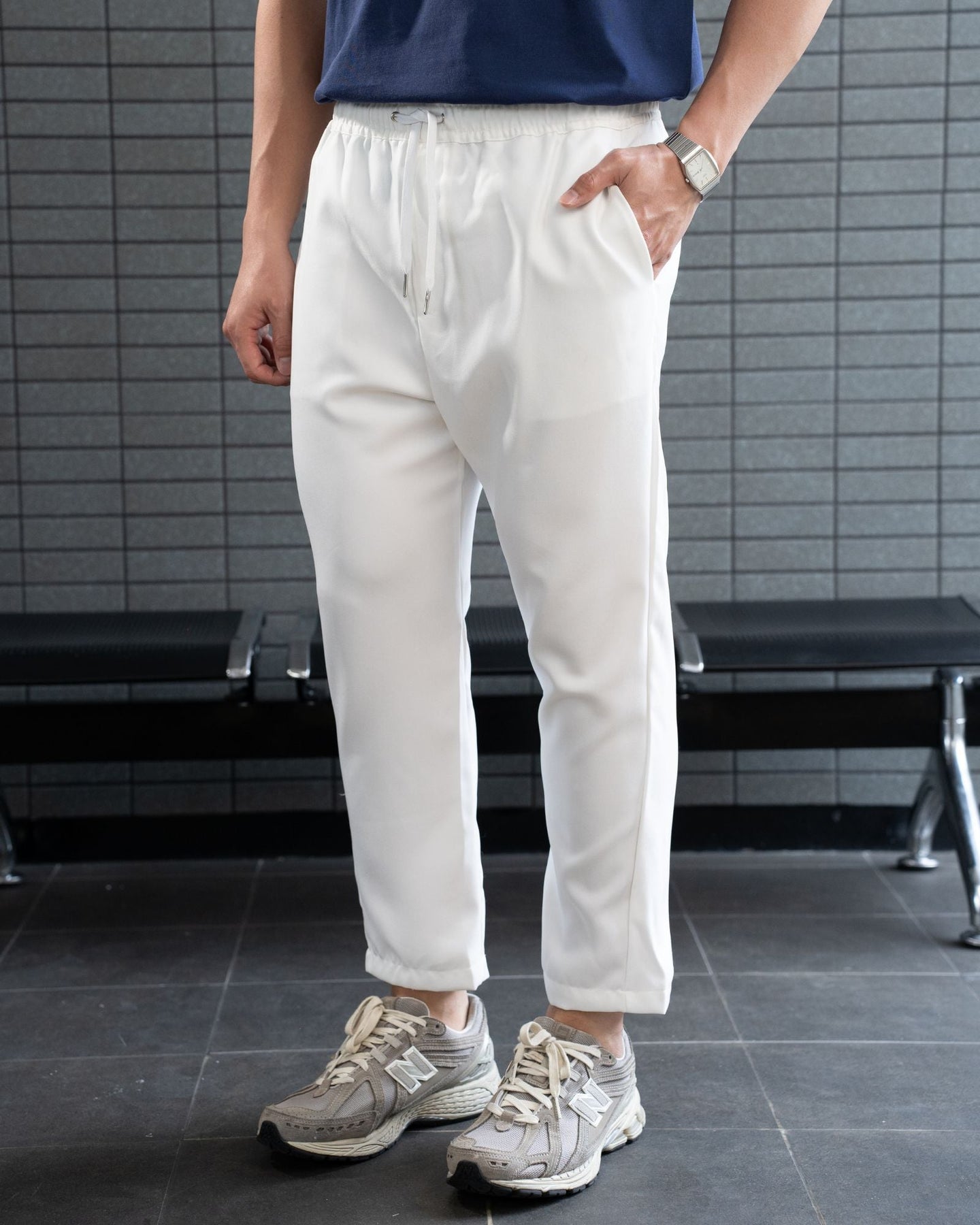 Vinis Ankle Pants menawarkan kenyamanan maksimal dengan waistband elastic yang kuat namun tetap fleksibel. Dilengkapi tali pipih, eyelet silver, serta saku depan-belakang yang diperkuat bartack, celana ini hadir dengan tampilan clean dan modern. Panjang ankle-length menjadikannya versatile untuk gaya santai maupun semi-formal.