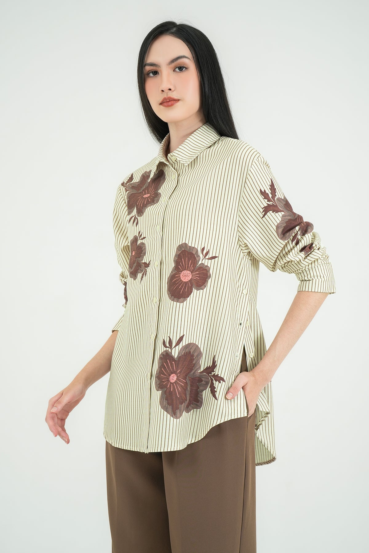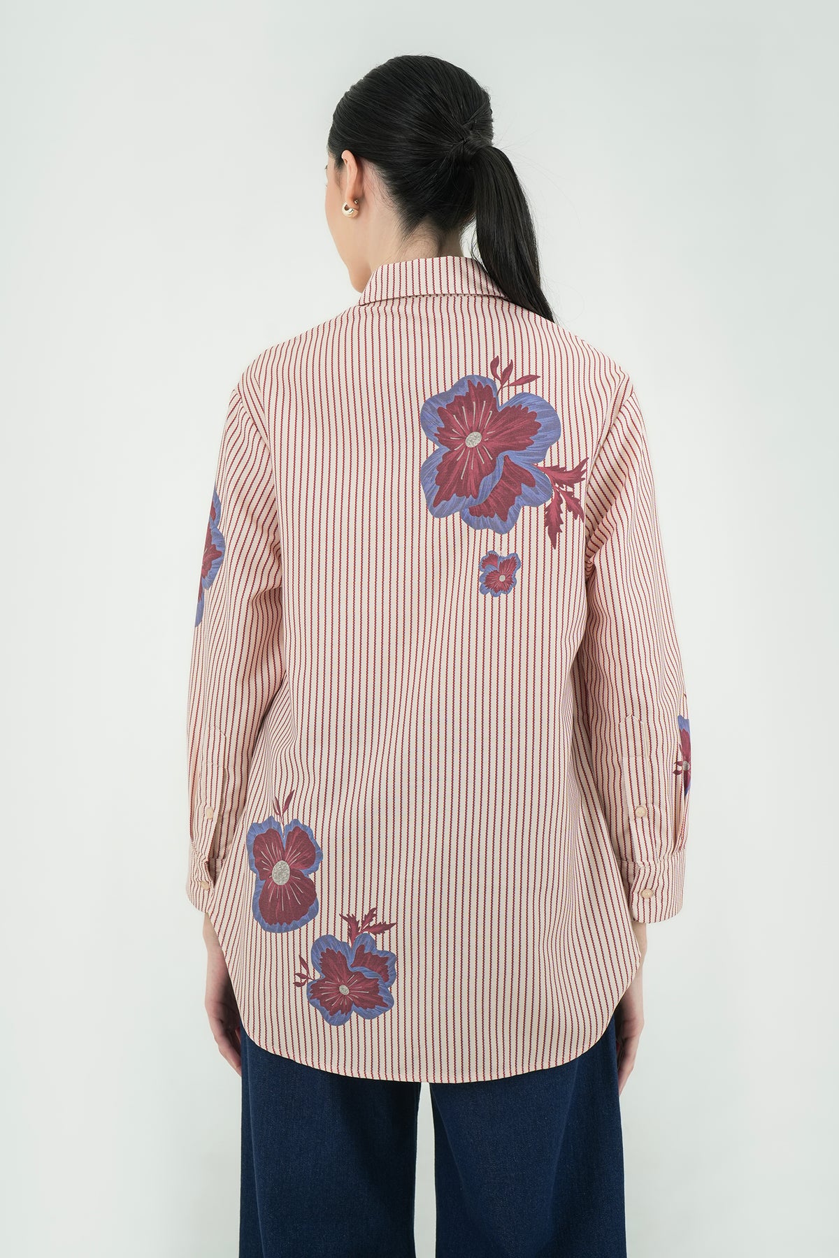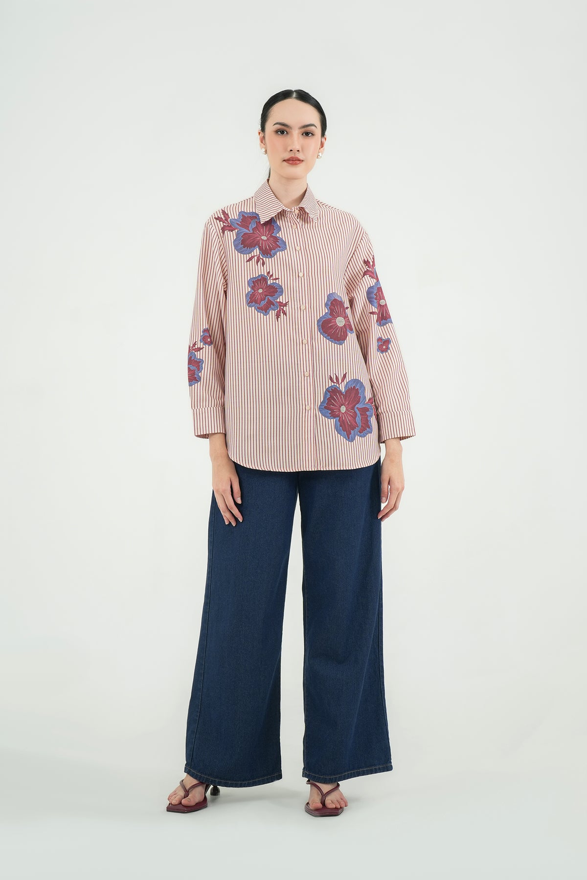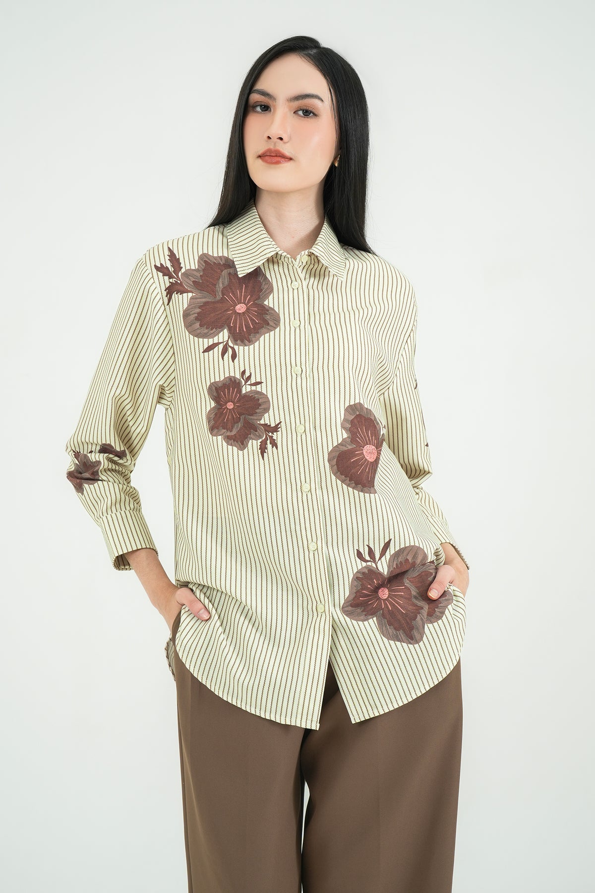 Paduan stripes lembut dengan floral prints, shirt ini menghadirkan nuansa fresh dan feminin—pilihan tepat untuk tampil chic tanpa usaha berlebih.