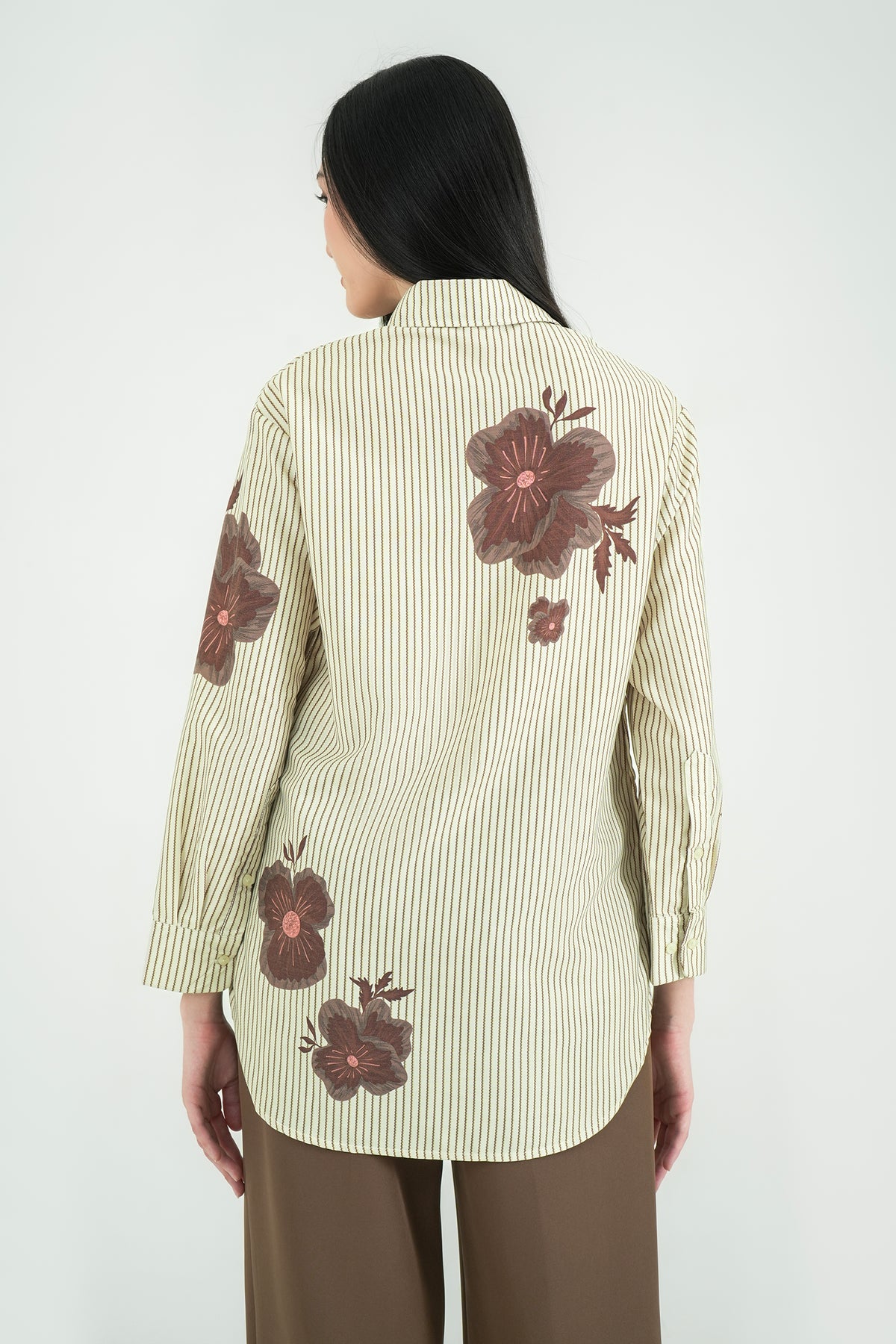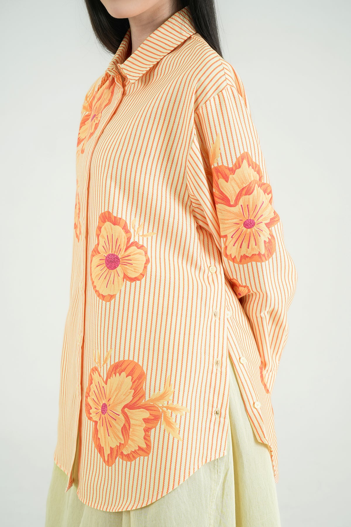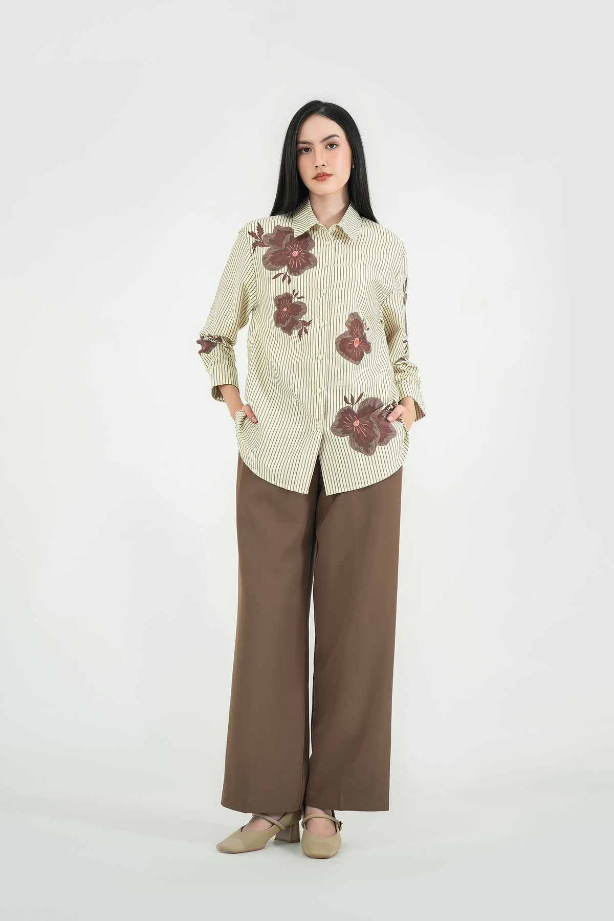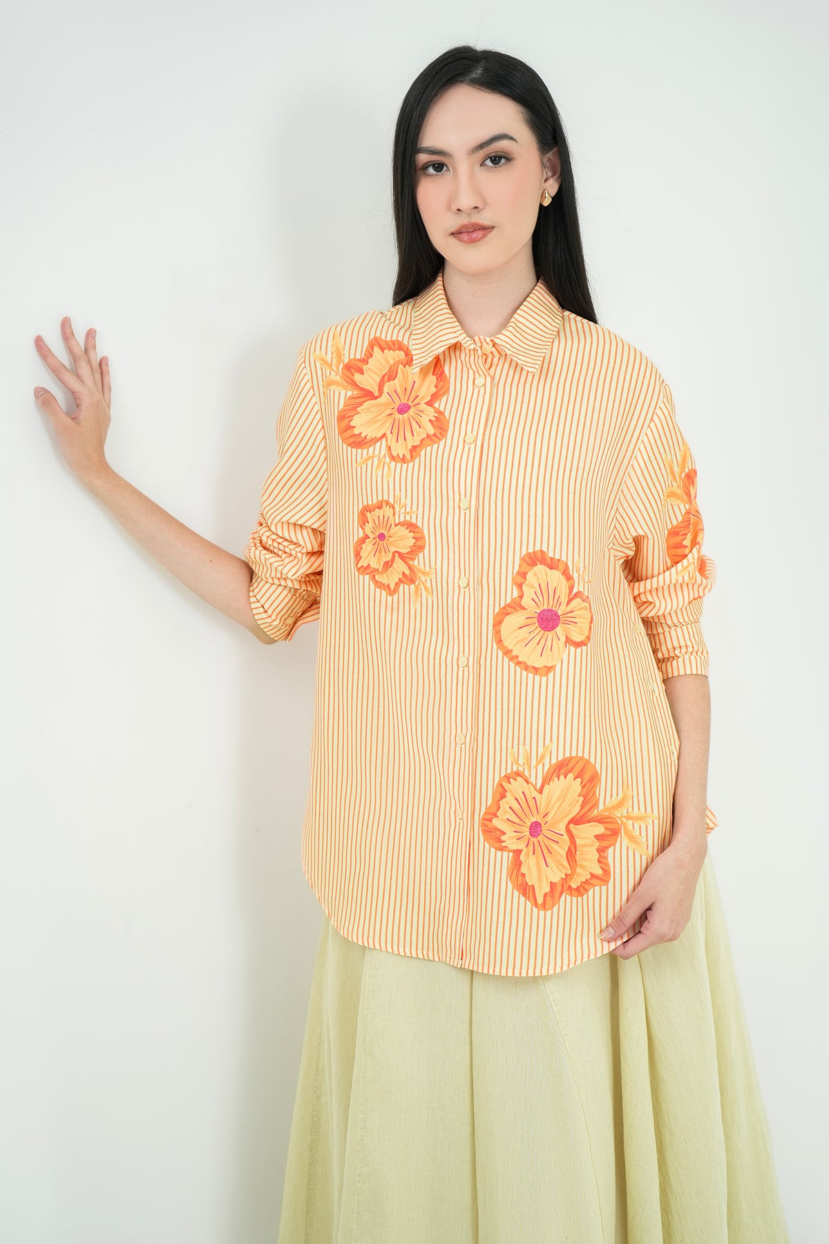 Paduan stripes lembut dengan floral prints, shirt ini menghadirkan nuansa fresh dan feminin—pilihan tepat untuk tampil chic tanpa usaha berlebih.