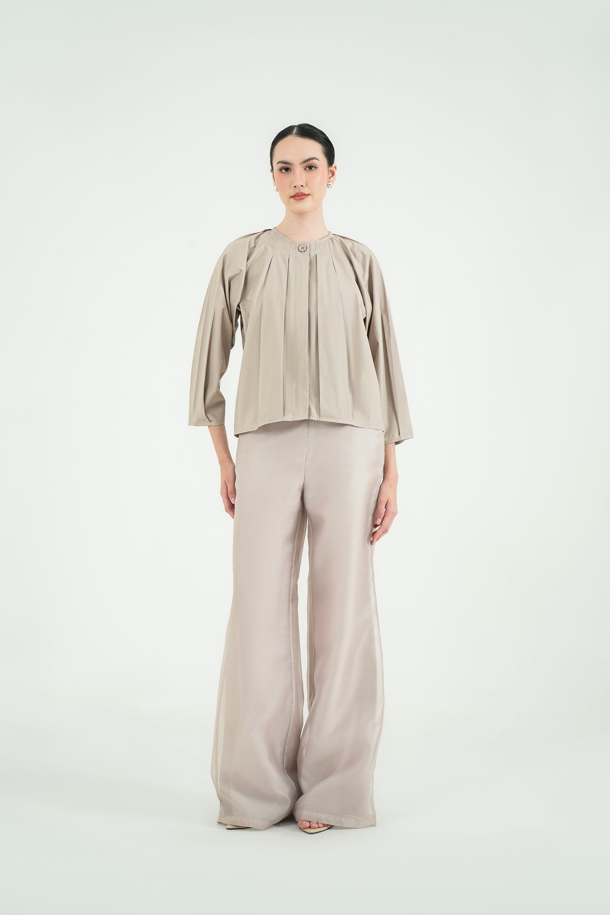 Atasan berbahan Premium Cotton yang ringan namun tetap struktur. Didukung detail lipit di bagian depan dan kancing single top, membuat look-nya minimalis tapi standout. Cutting-nya relaxed sehingga bisa dipakai sebagai shirt maupun outer — versatile untuk styling sehari-hari. Nyaman, breathable, dan cocok untuk tampilan clean yang effortless.