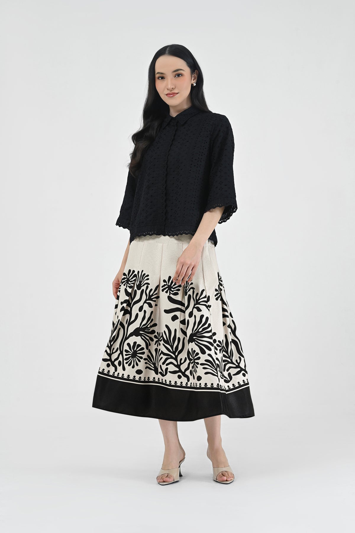 Skirt ini memberikan kenyamanan maksimal tanpa mengorbankan gaya. Cuttingannya modern dengan sentuhan flowy, menjadikannya mudah dipadukan dengan berbagai atasan untuk look casual hingga semi-formal.
