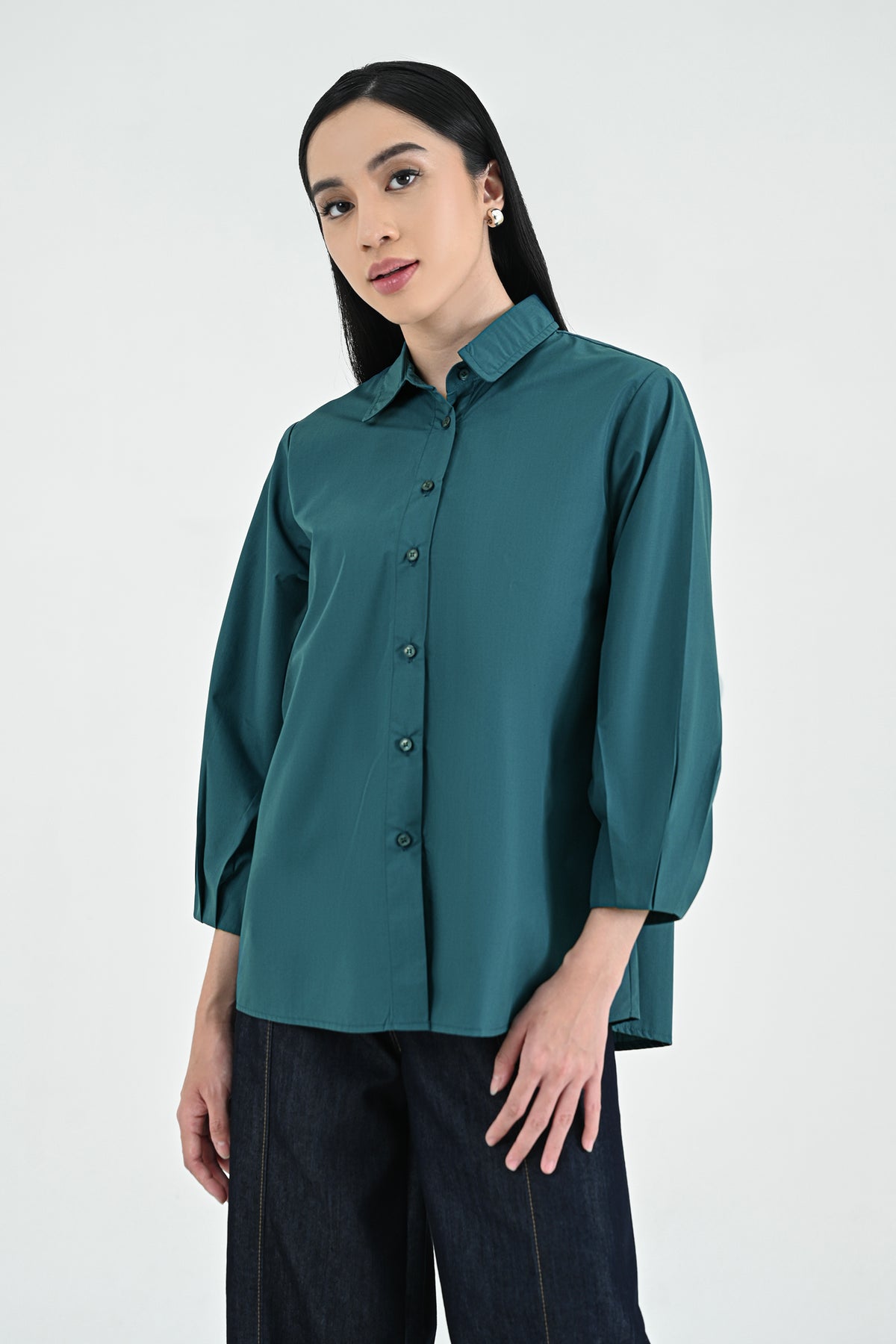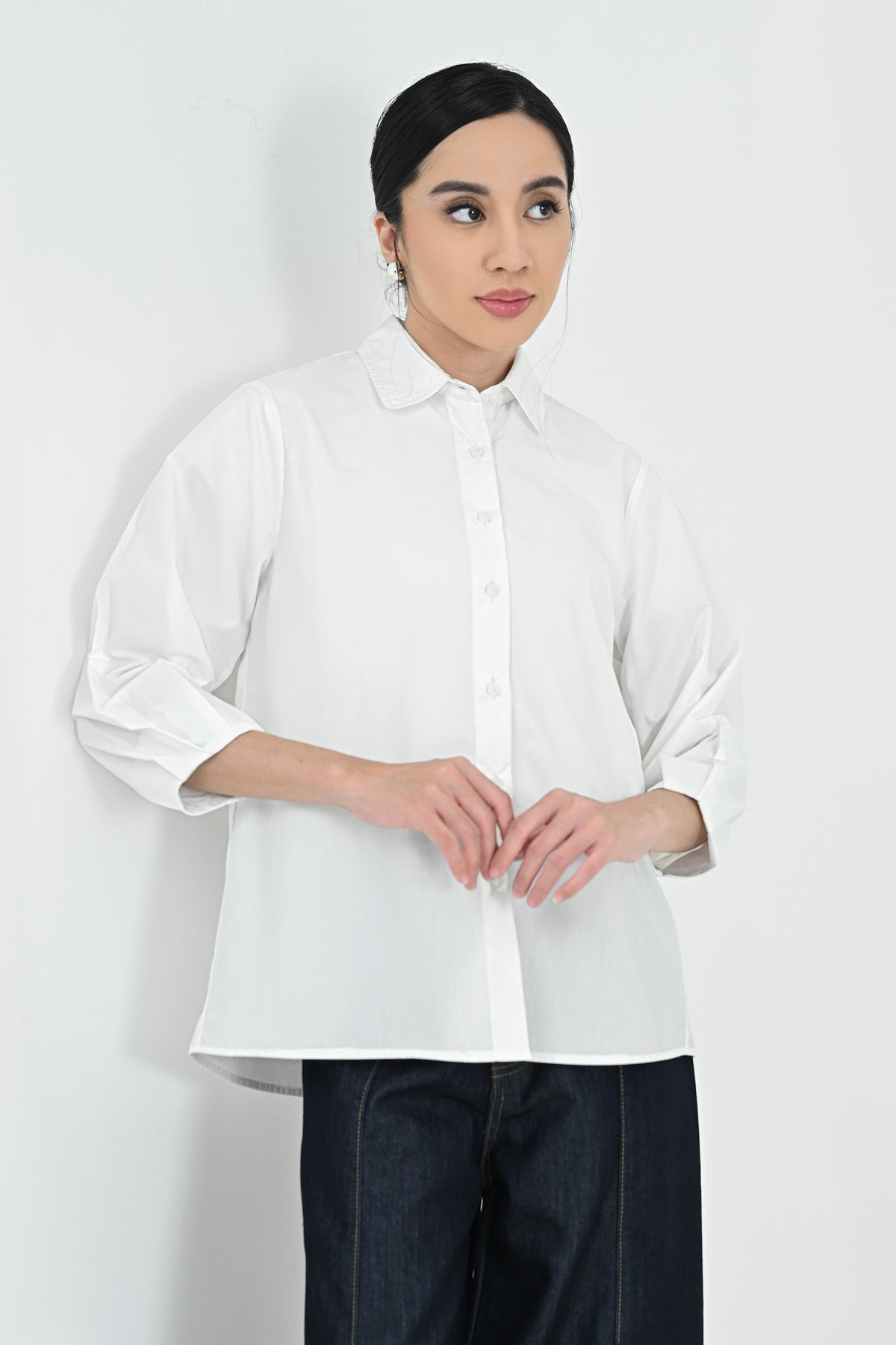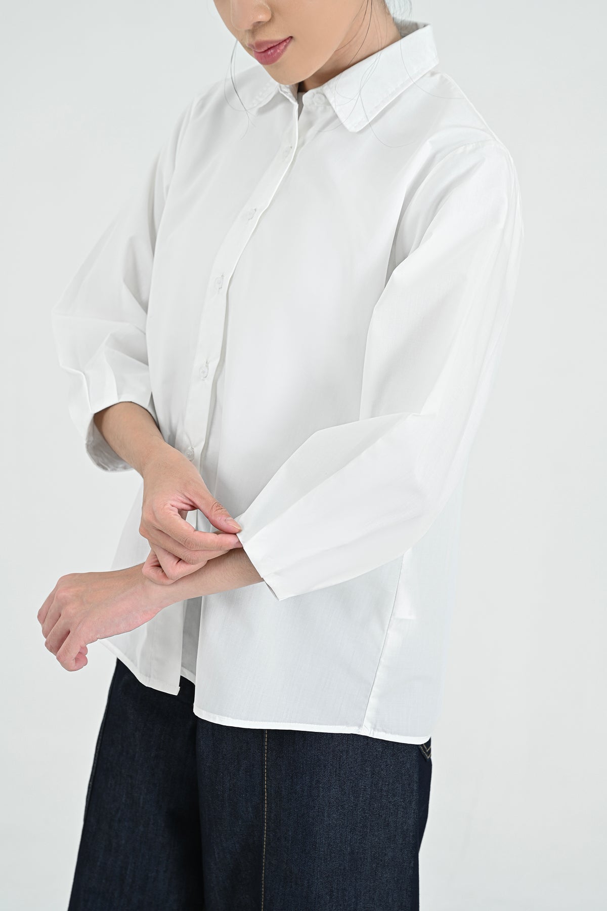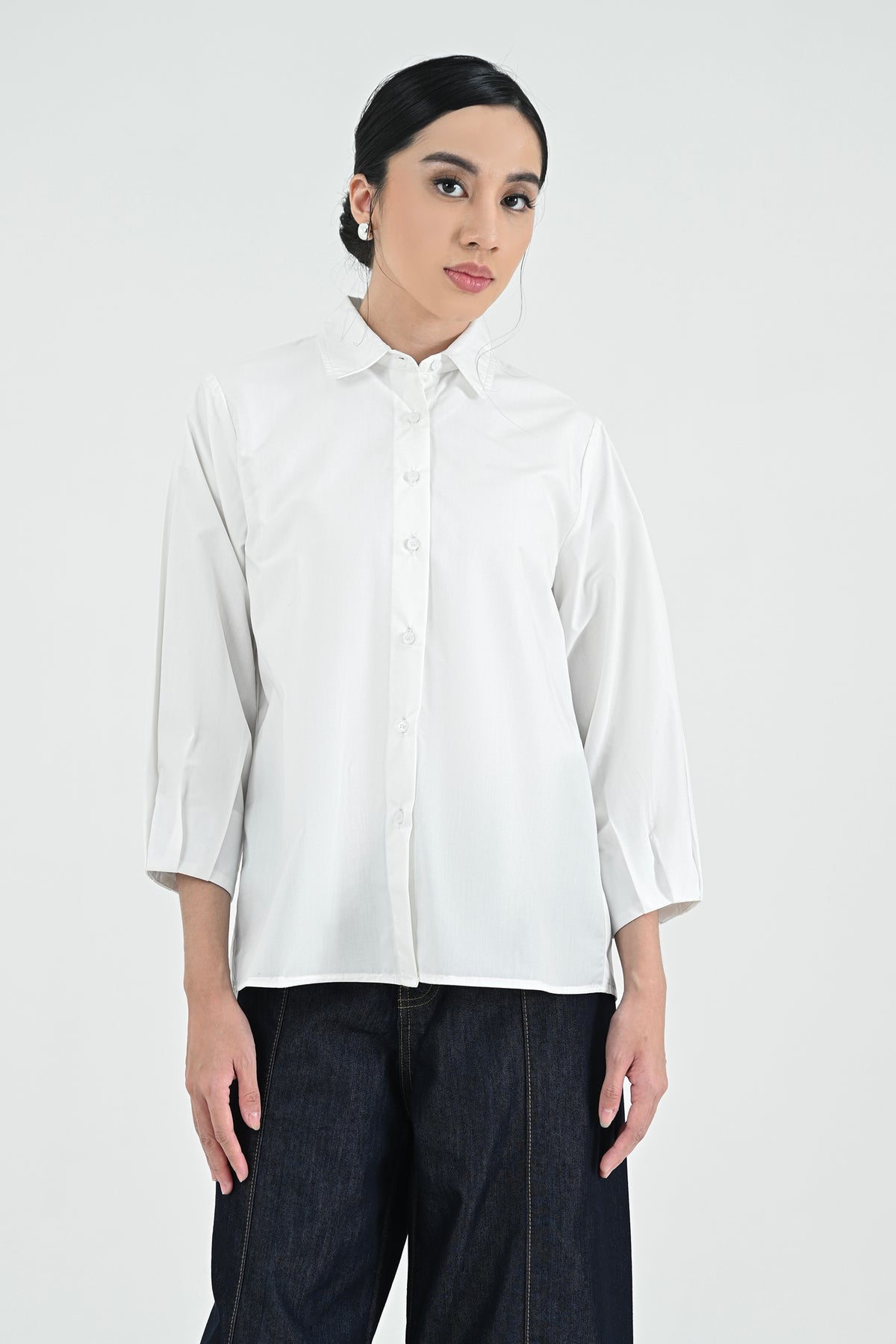 Kemeja berbahan premium cotton dengan tekstur halus dan nyaman di kulit. Didesain simpel dengan potongan regular dan lengan 7/8 — menghadirkan tampilan clean dan effortless untuk setiap kesempatan.