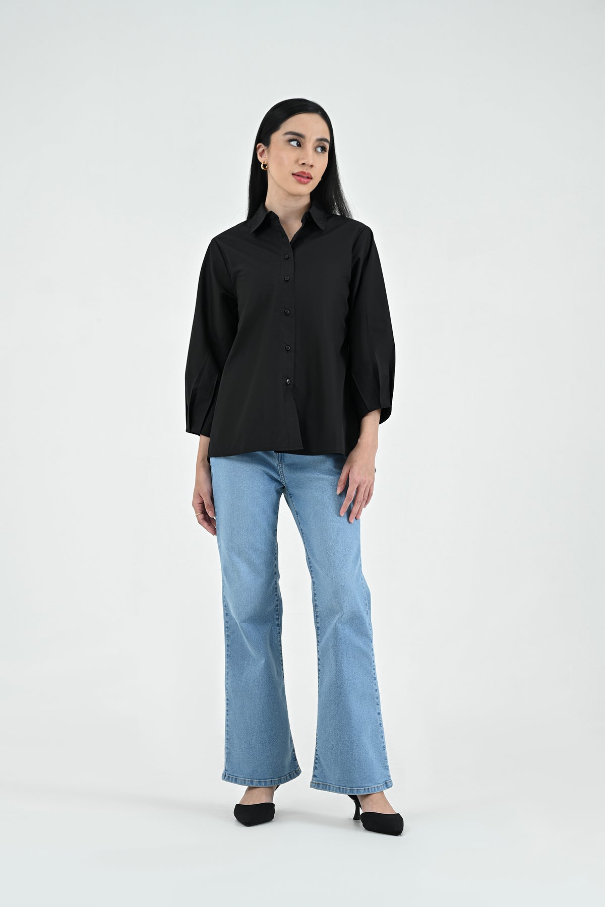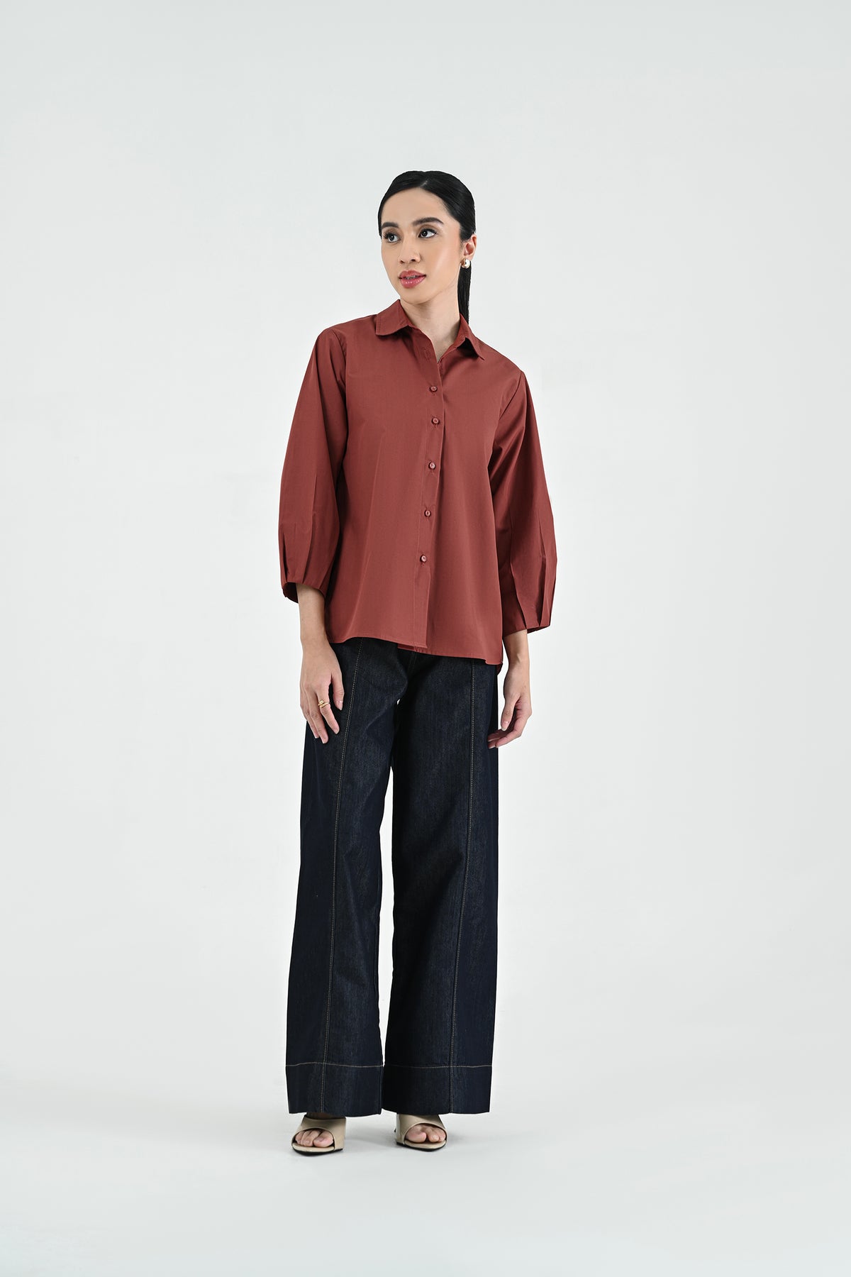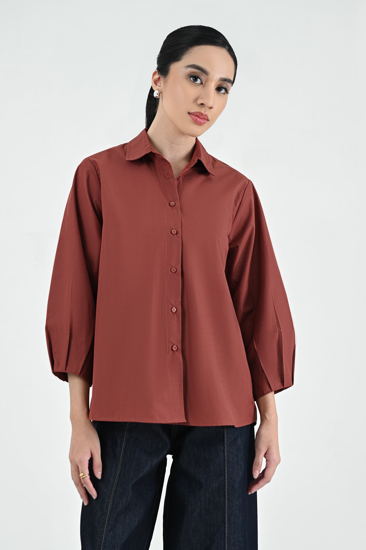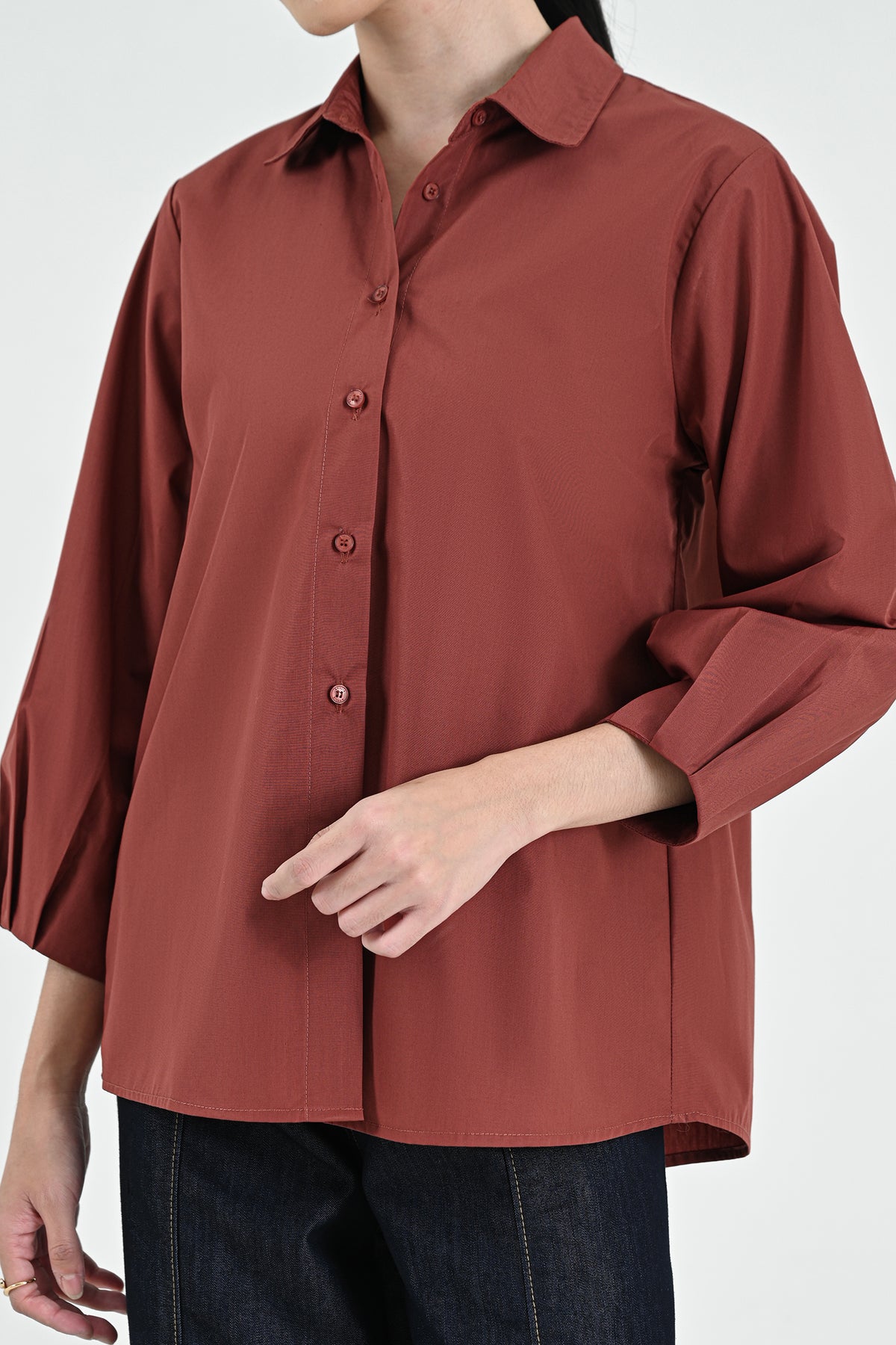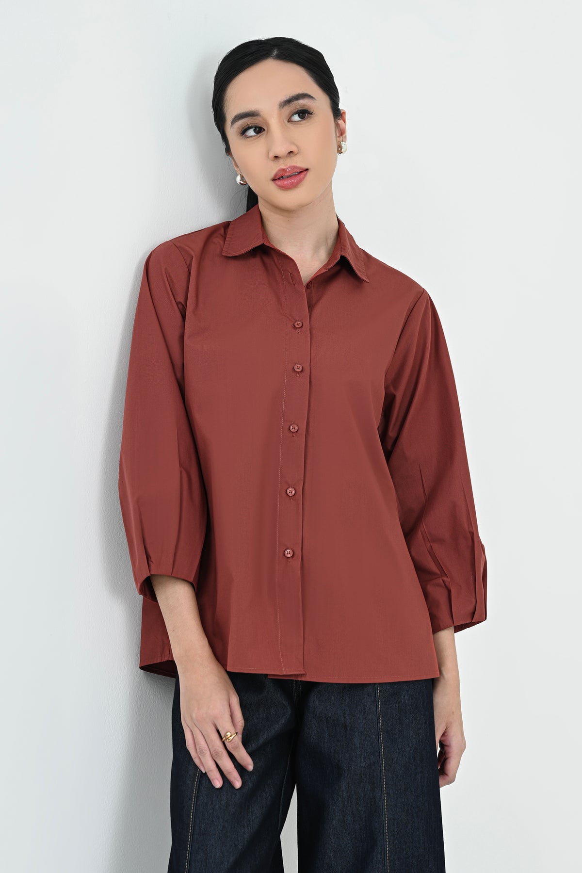 Kemeja berbahan premium cotton dengan tekstur halus dan nyaman di kulit. Didesain simpel dengan potongan regular dan lengan 7/8 — menghadirkan tampilan clean dan effortless untuk setiap kesempatan.