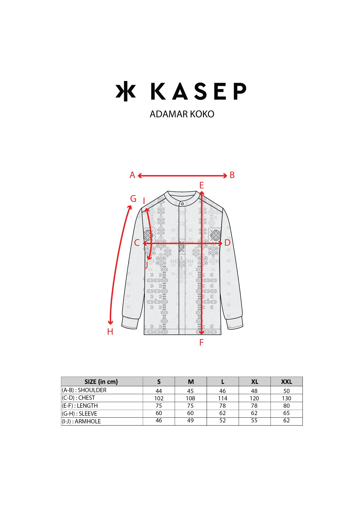 Lingkar Kerung Lengan: 46/49/52/55/62cm