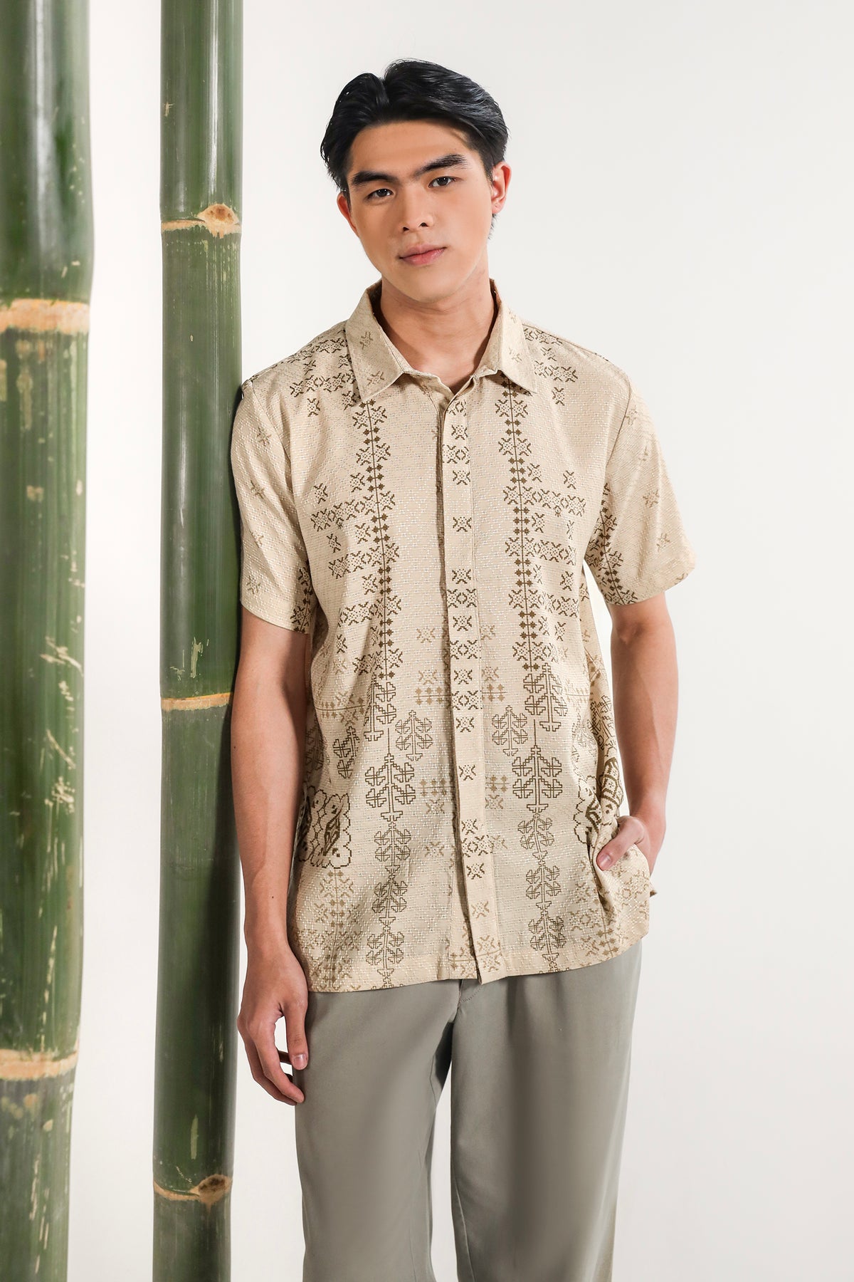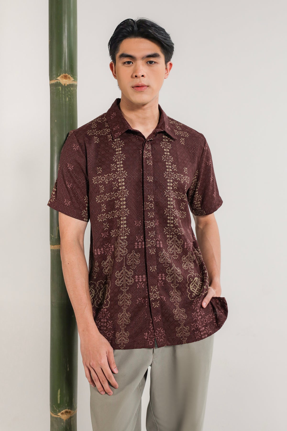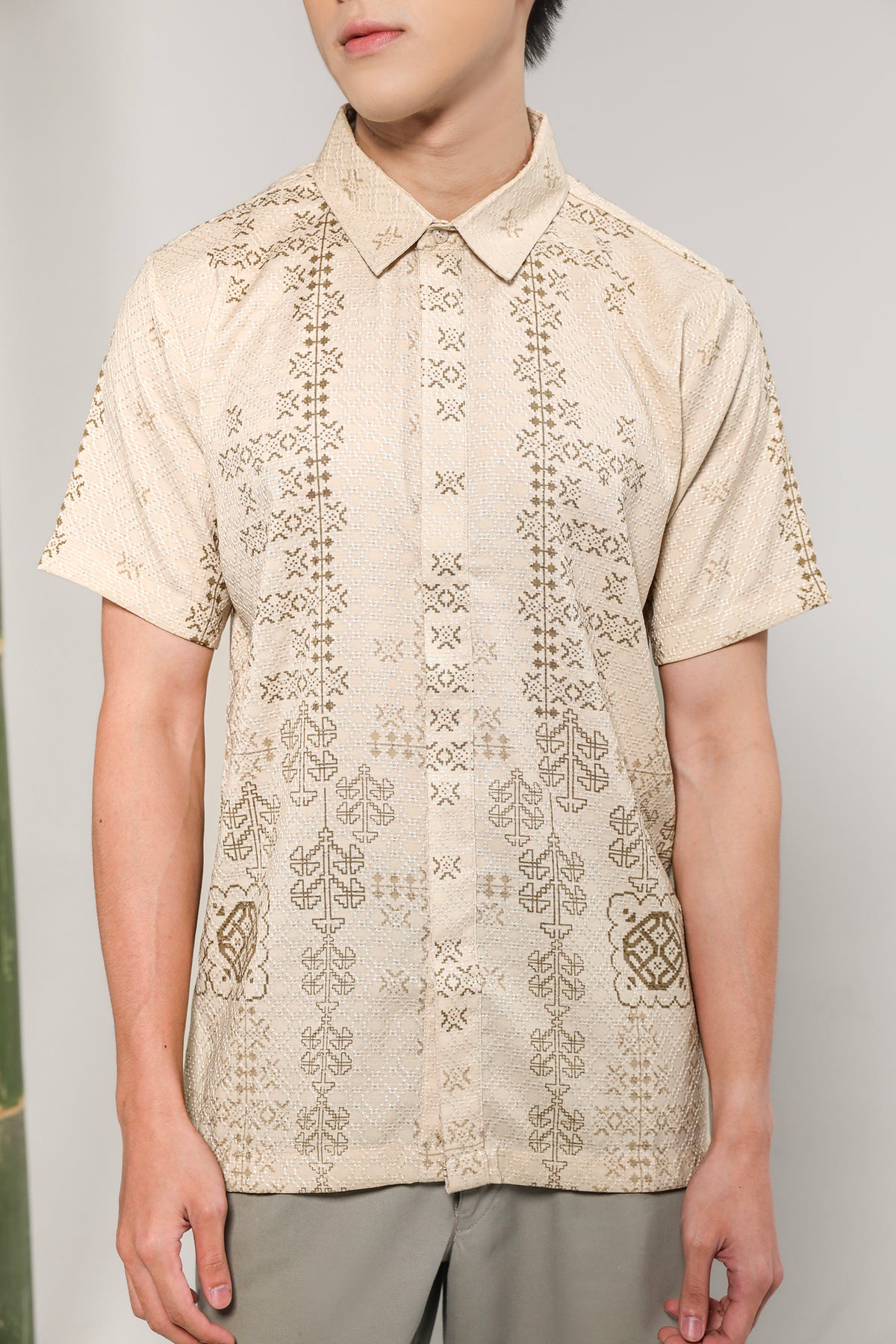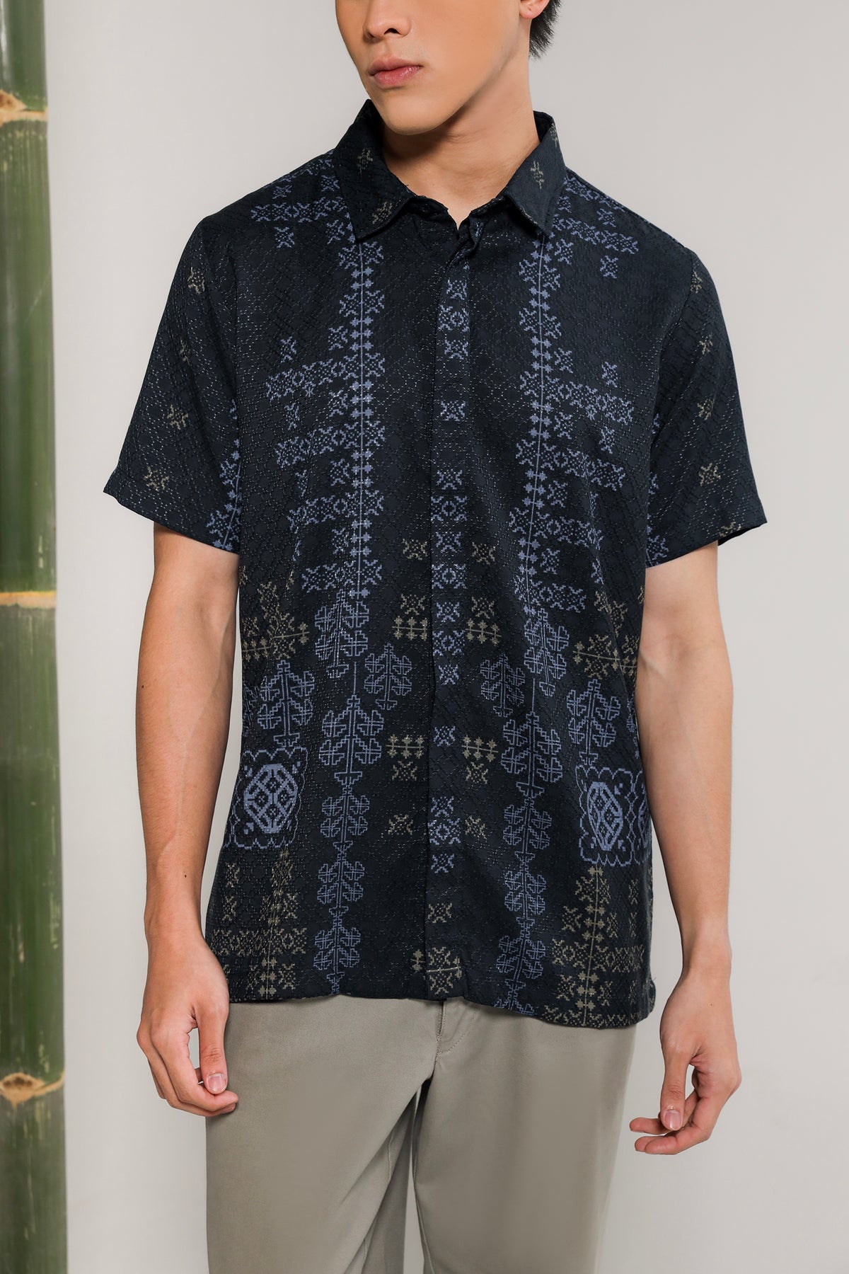 • Bukaan full kancing hidden di bagian depan