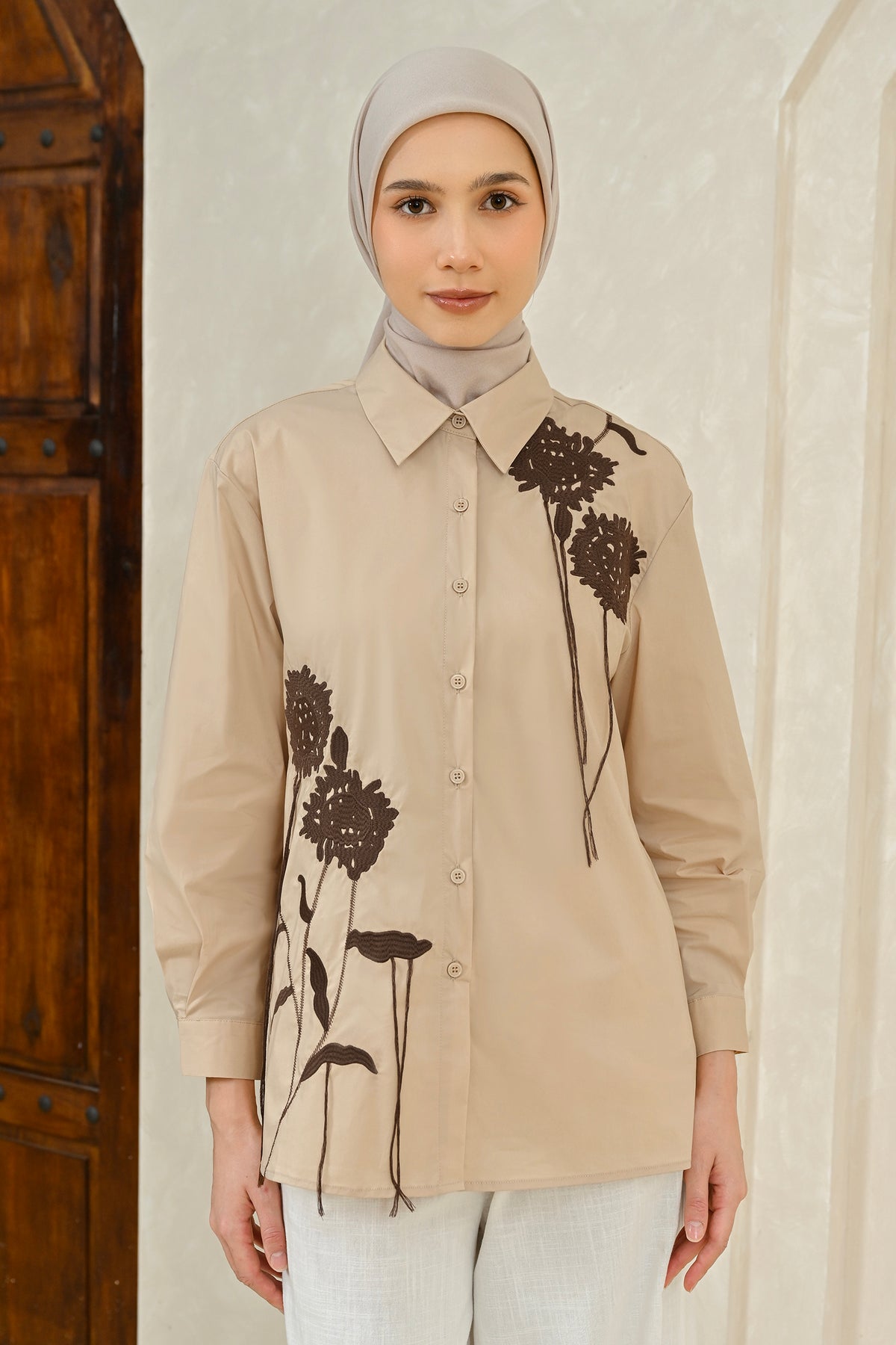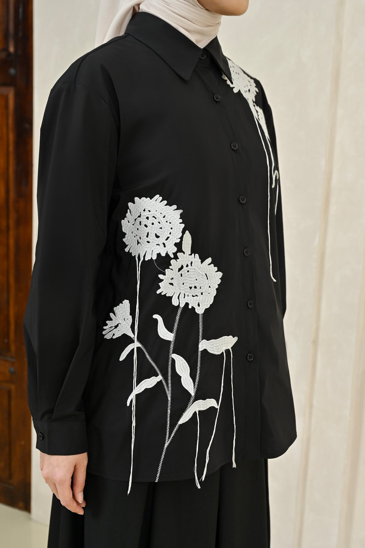Atasan dengan siluet daily dan detail embroidery floral eksklusif, menghadirkan tampilan modern yang tenang dan berkelas. Pilihan sempurna untuk momen refined & elevated.