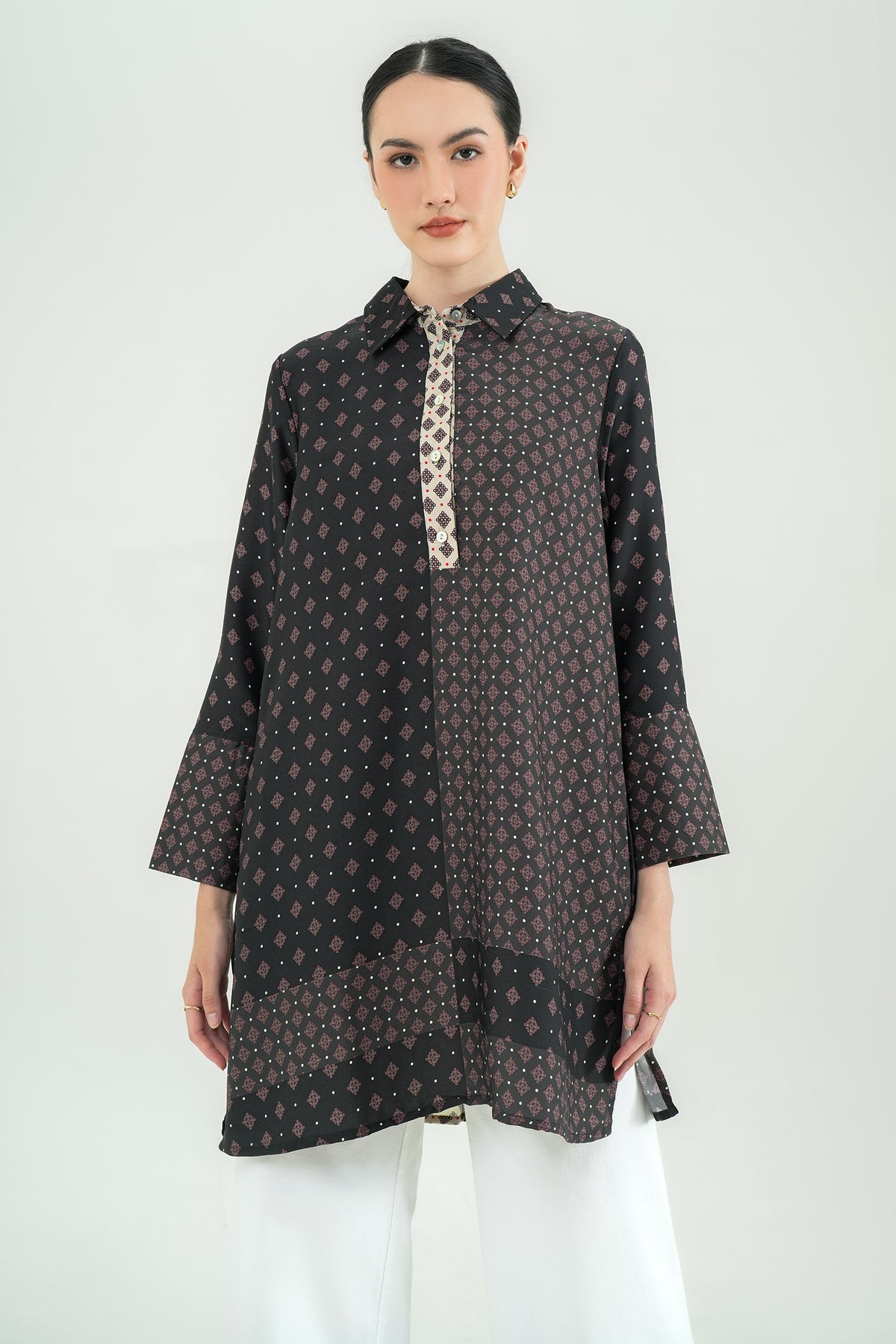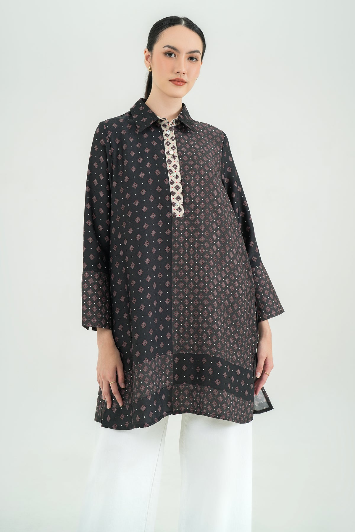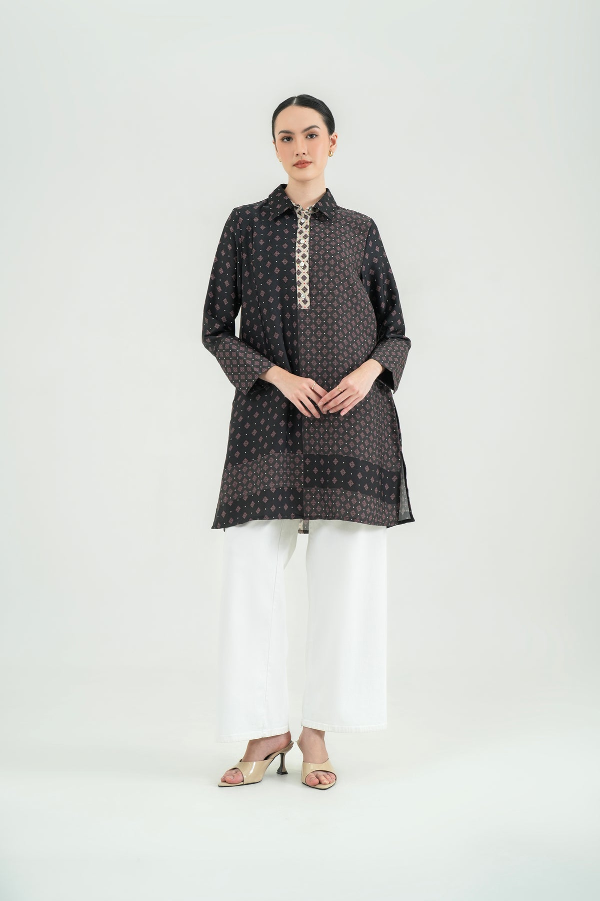 Lemiana Tunic hadir dengan bahan Polycotton Blend yang ringan, tidak mudah kusut, dan tetap breathable. Motif geometrik yang dipadukan dengan panel kontras di bagian depan memberi tampilan yang unik namun tetap refined. Cutting-nya long & relaxed sehingga nyaman dipakai dan mudah dipadukan dengan celana lurus atau wide pants. Cocok untuk tampilan modest yang tetap modern dan effortless.
